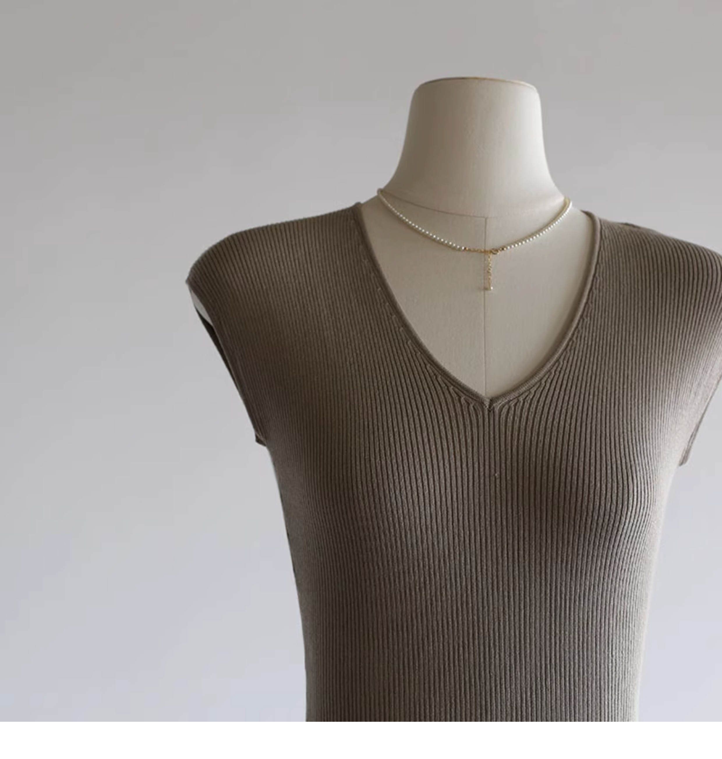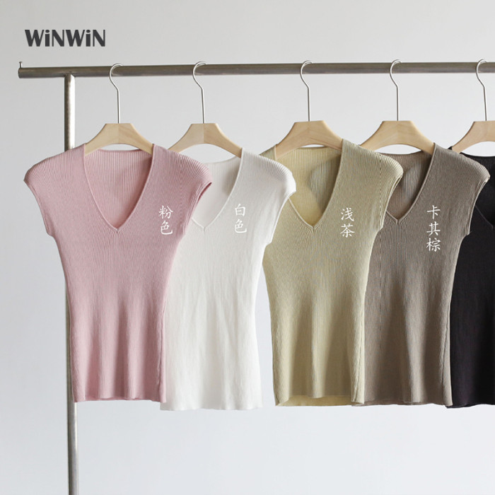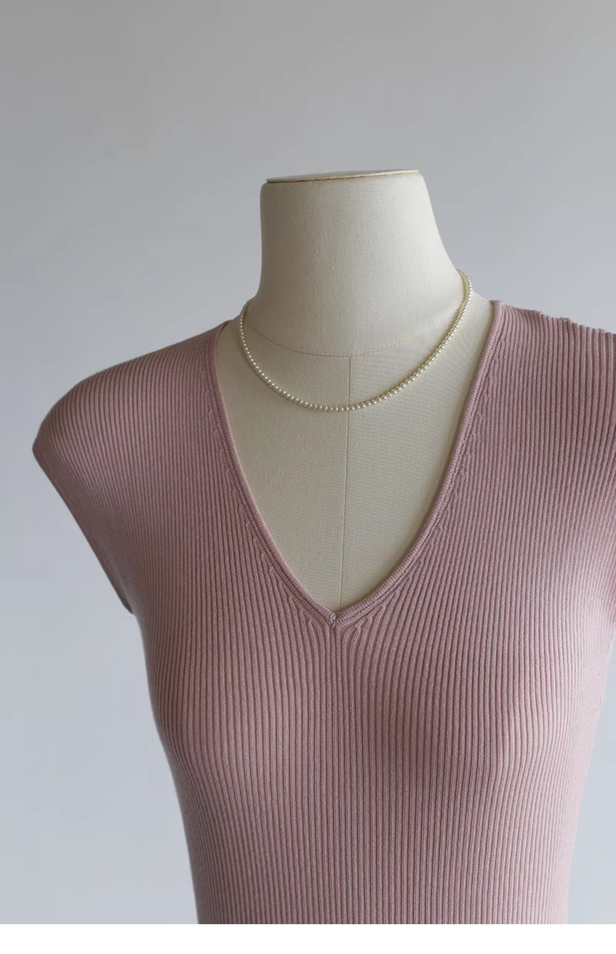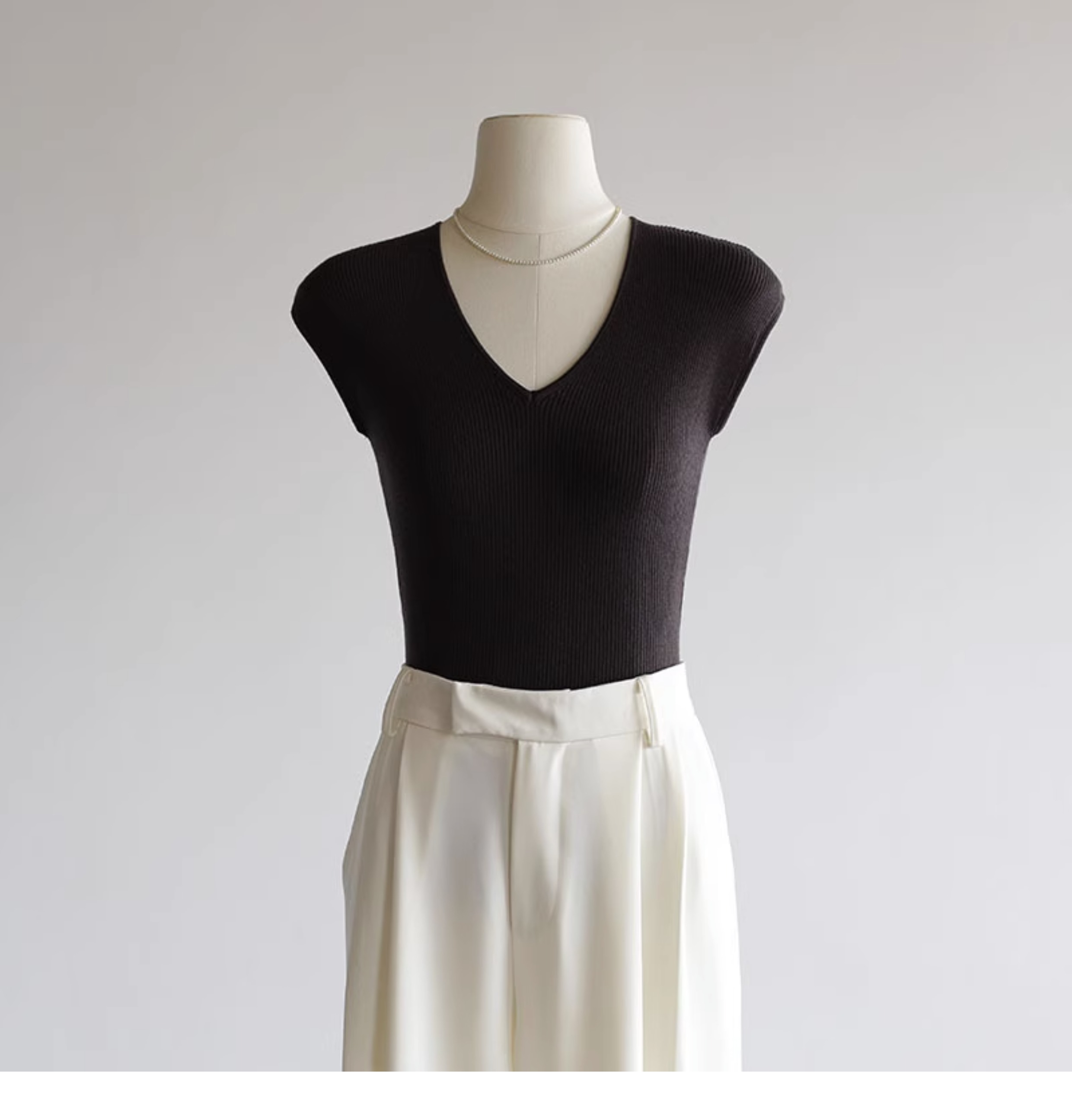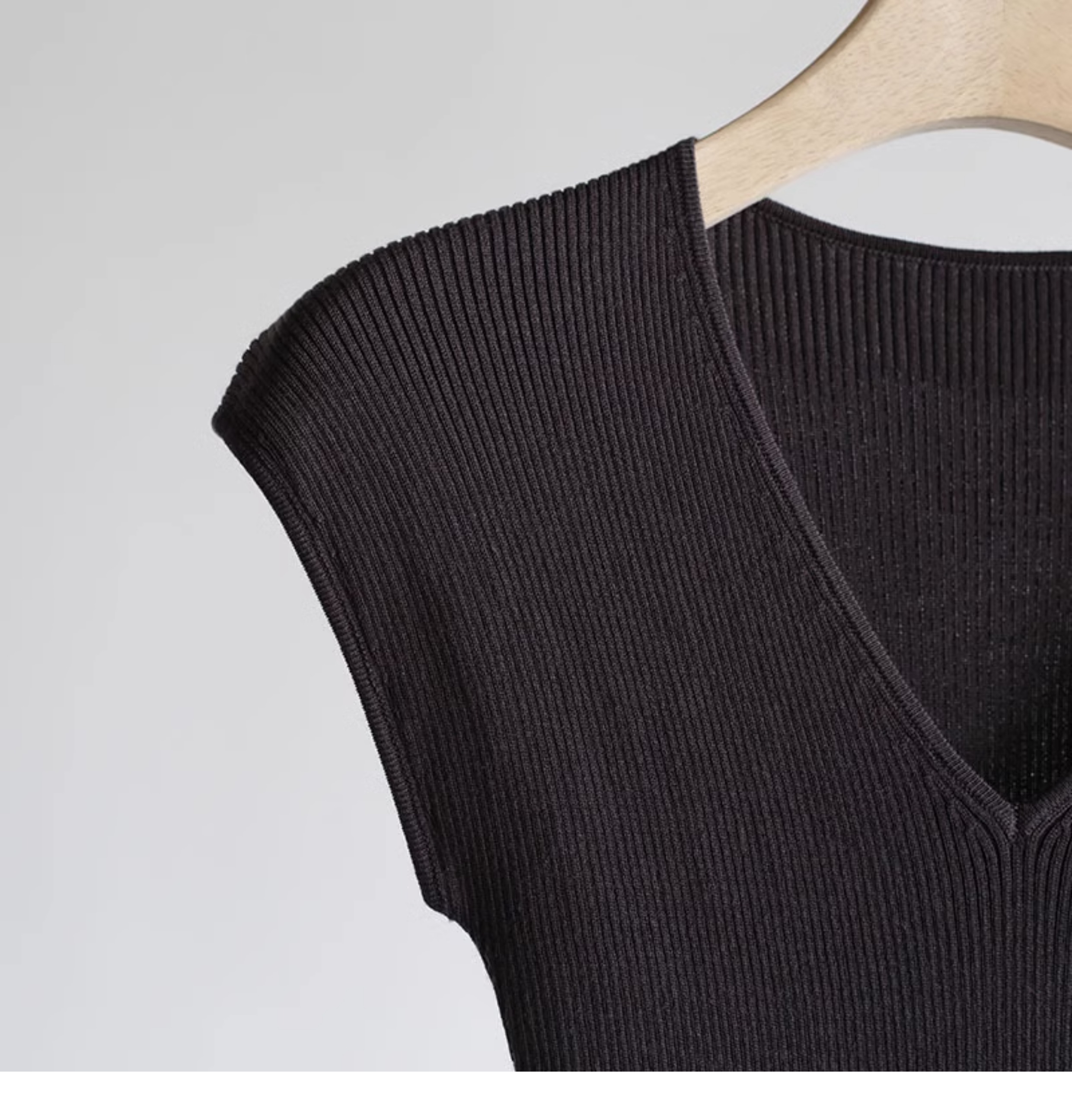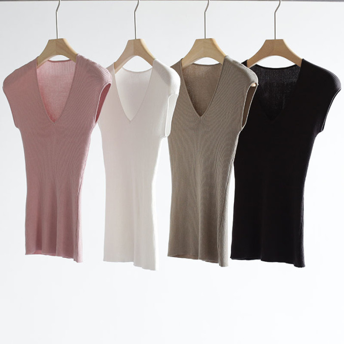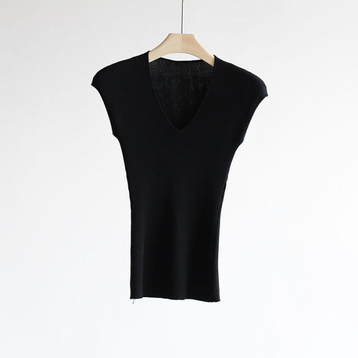 天絲萊賽爾V領針織衫女夏季新款修身顯瘦彈力打底衫薄款別致上衣