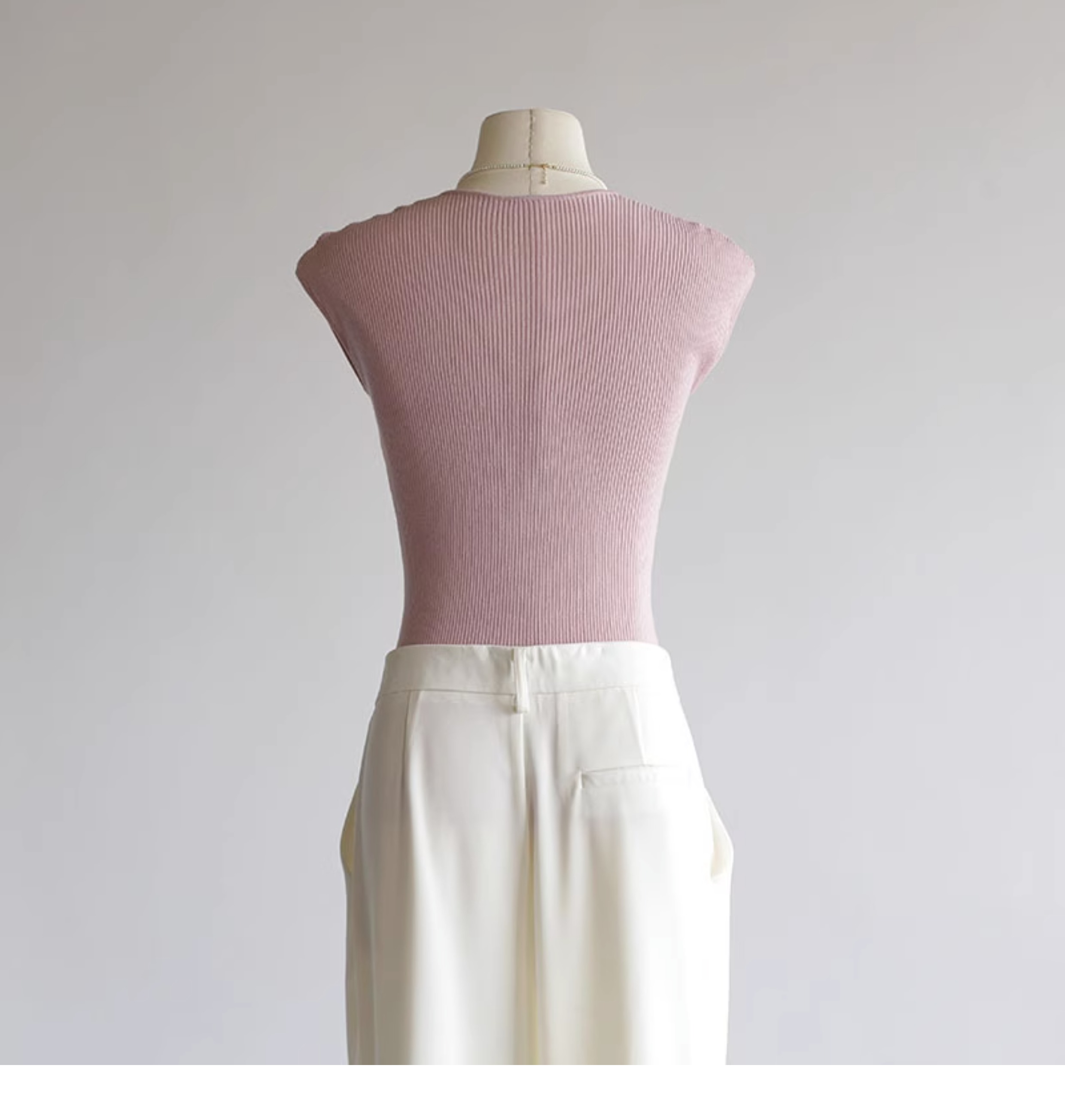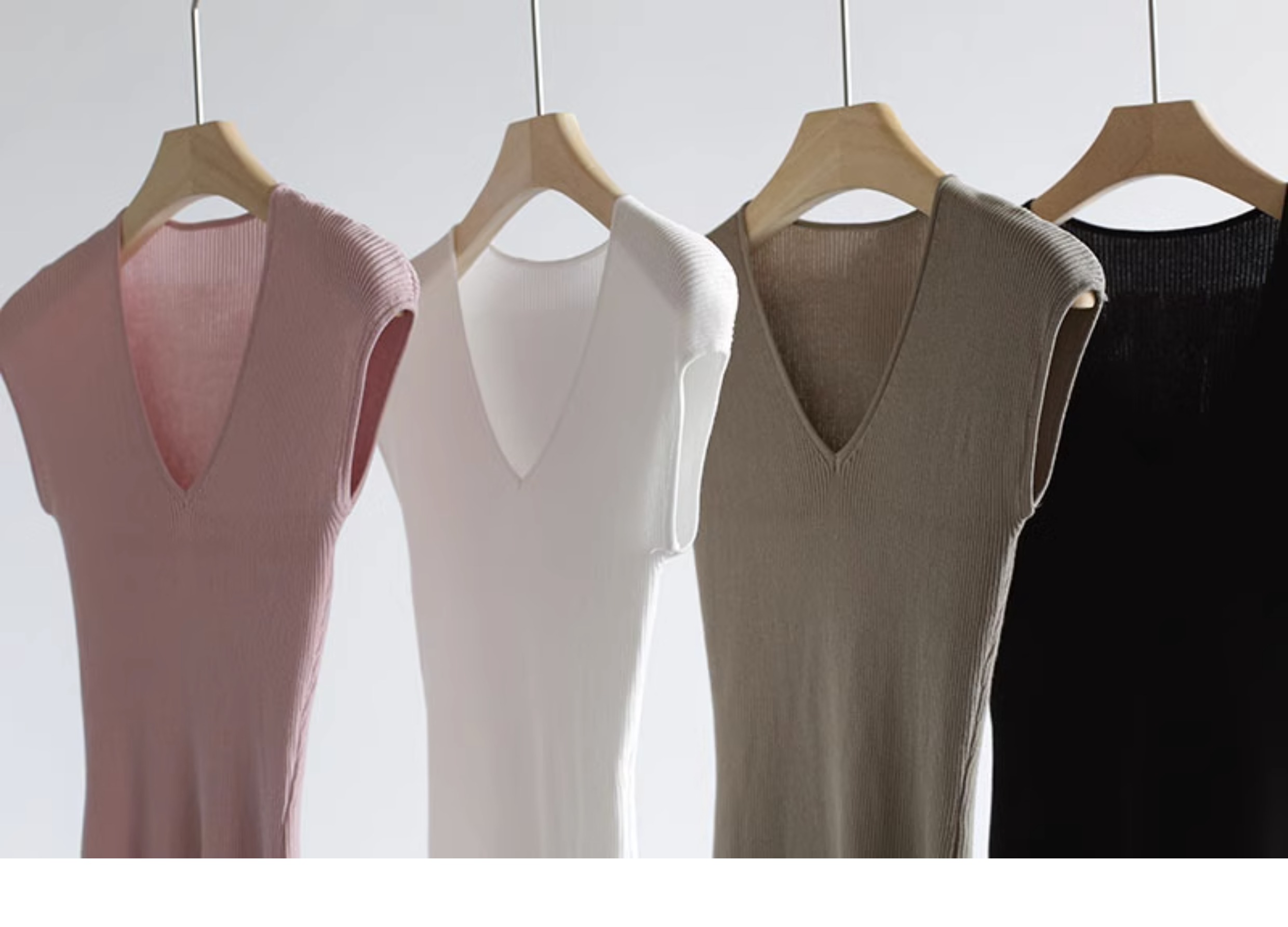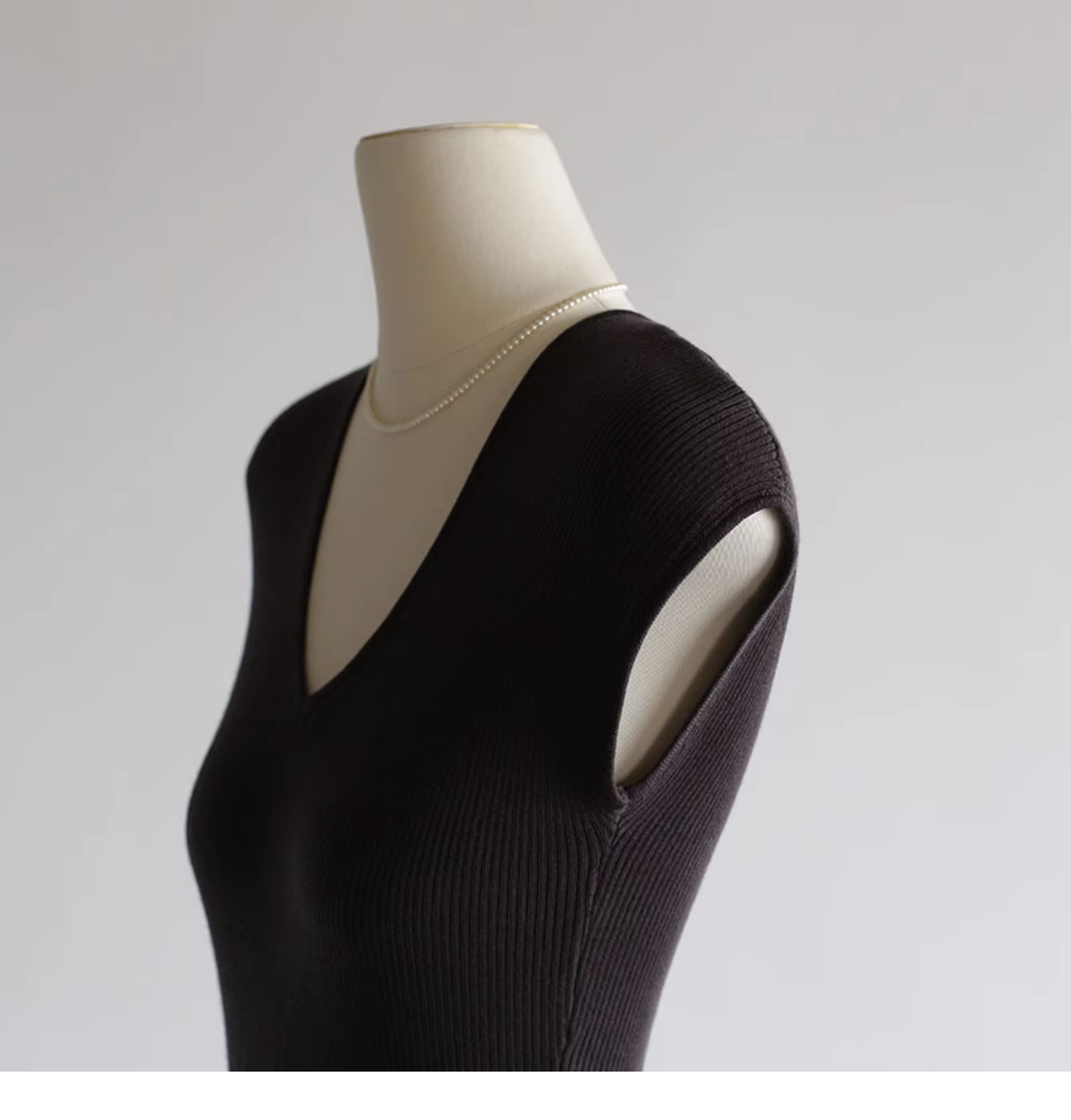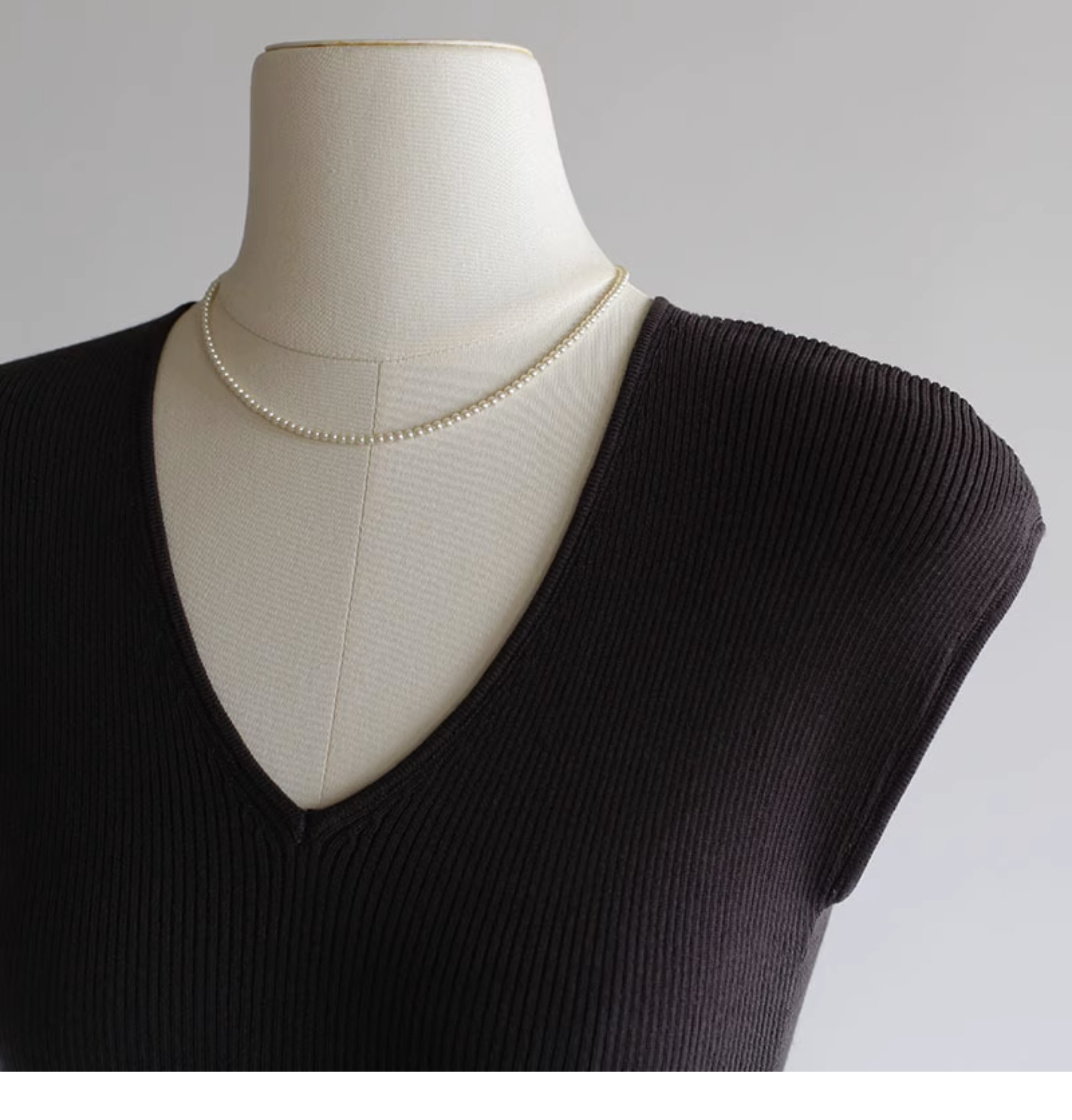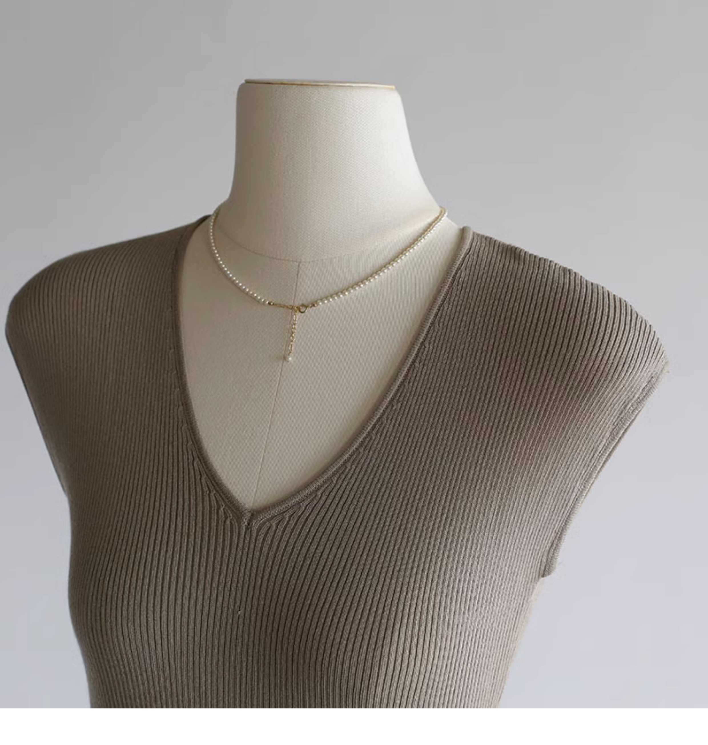 天絲萊賽爾V領針織衫女夏季新款修身顯瘦彈力打底衫薄款別致上衣