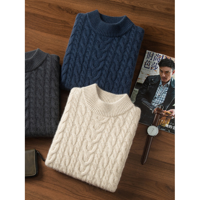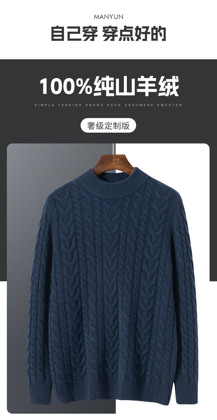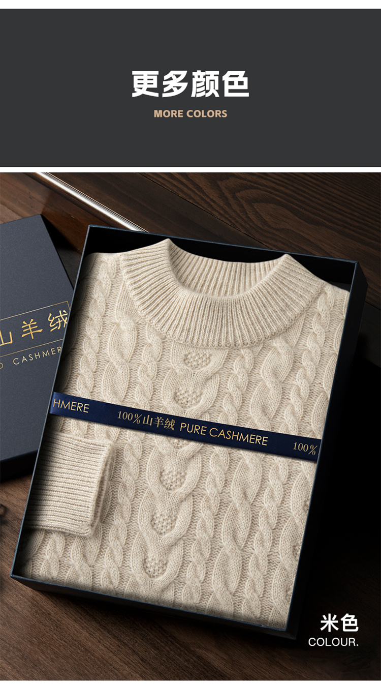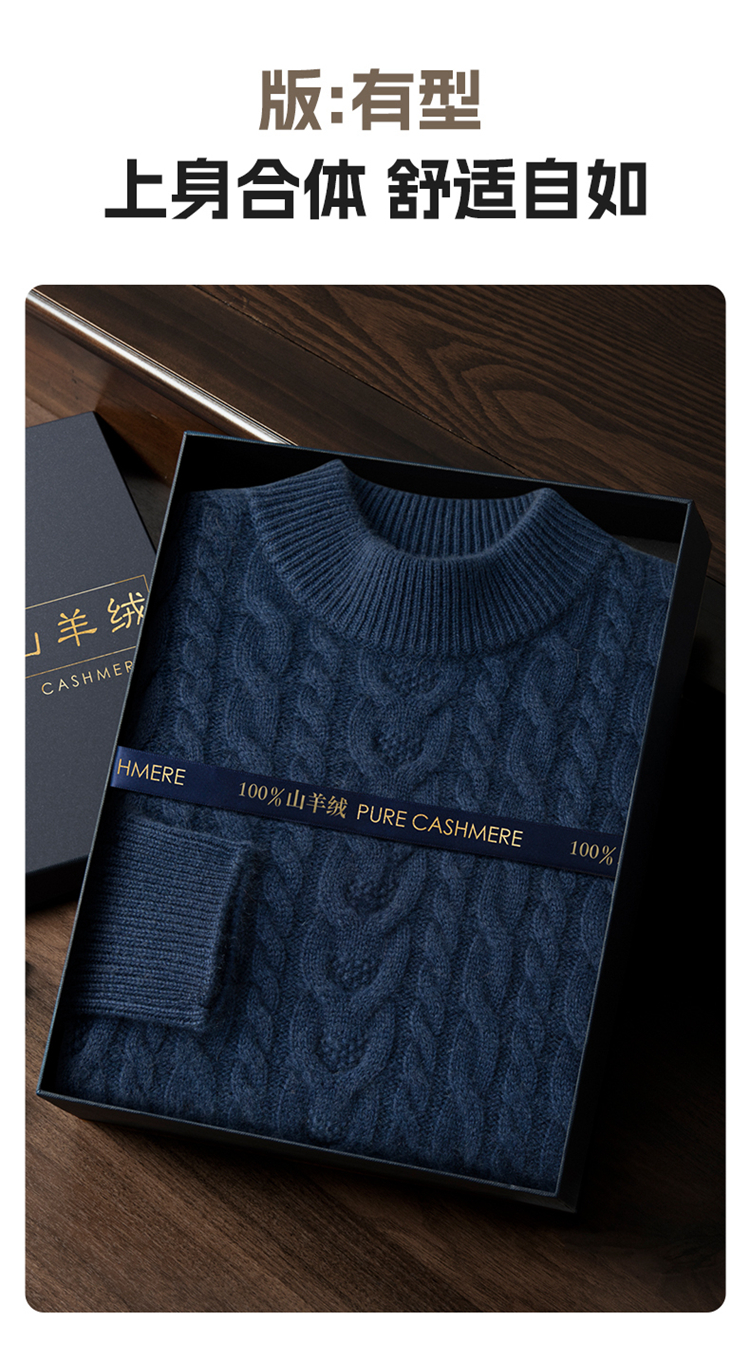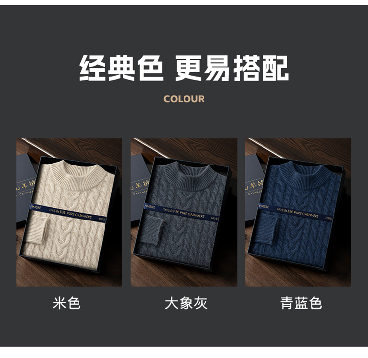 100%純山羊絨衫男半高領麻花扭花毛衣時尚商務休閒加厚保暖打底衫