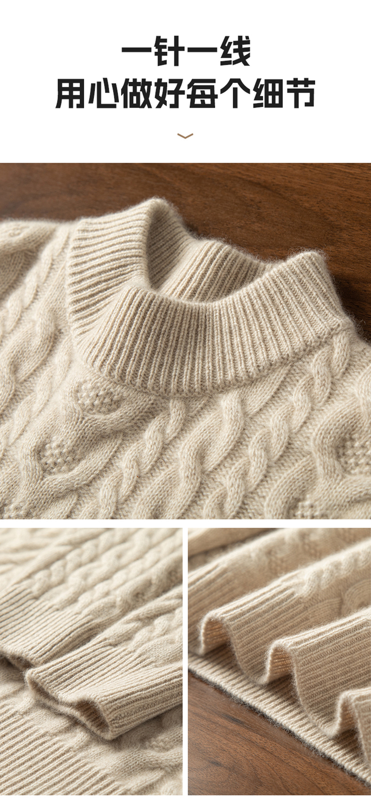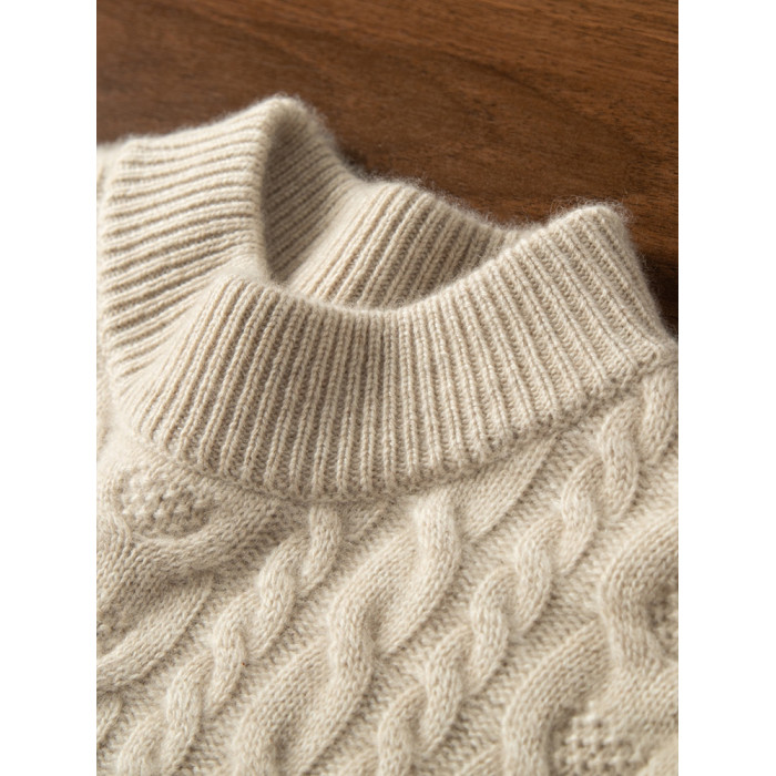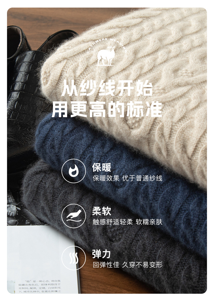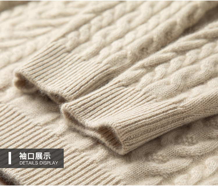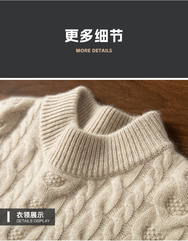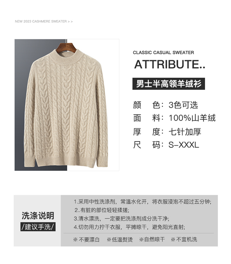 100%純山羊絨衫男半高領麻花扭花毛衣時尚商務休閒加厚保暖打底衫