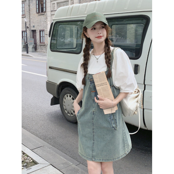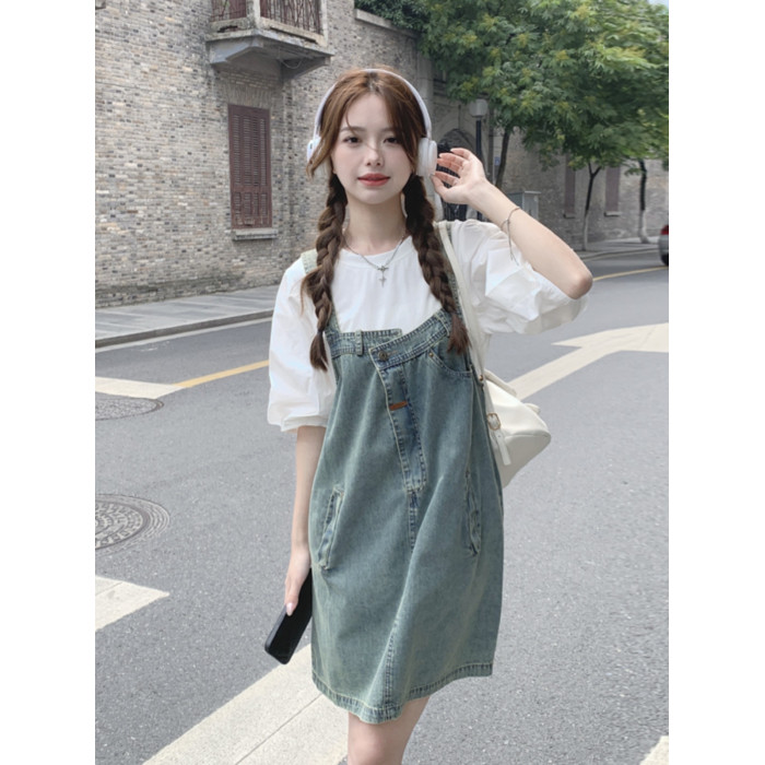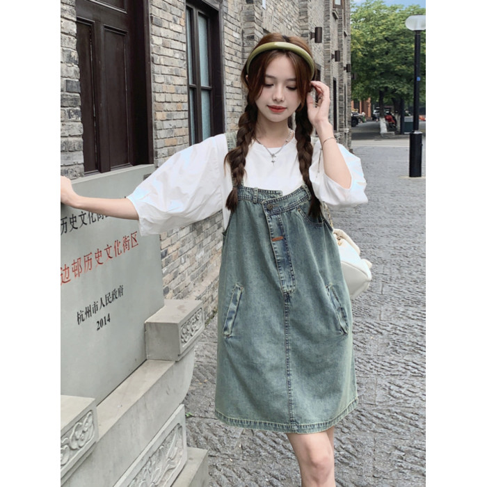 小衆設計牛仔背帶裙女夏季2025復古甜酷減齡連衣裙奶系穿搭一整套