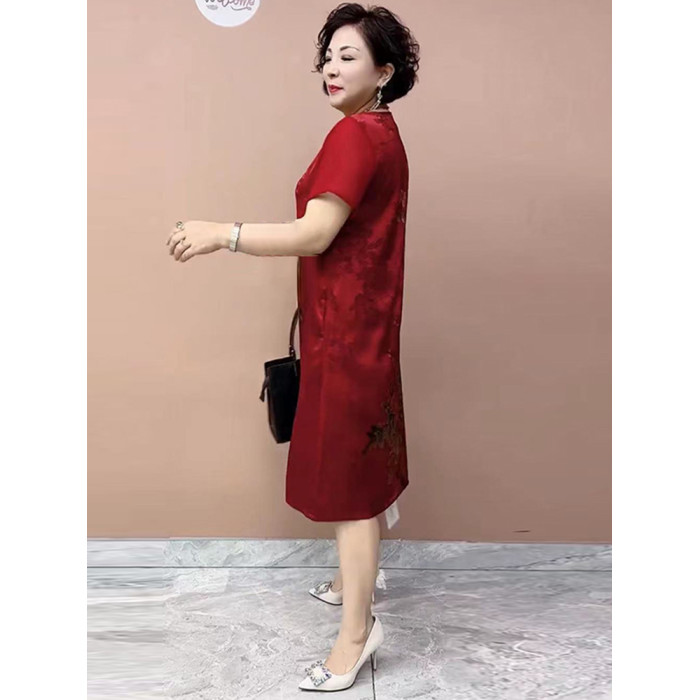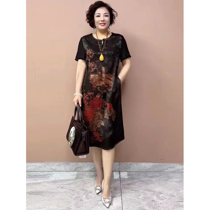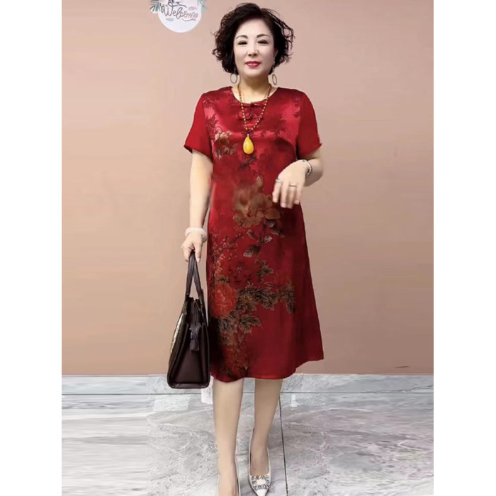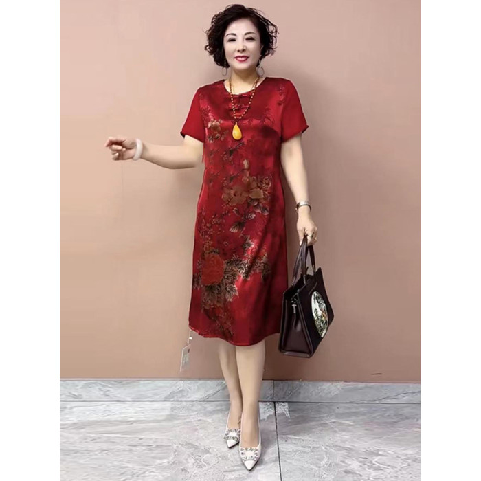 重磅真絲連衣裙夏季新款中老年女裝氣質媽媽寬松大碼顯瘦中長裙子