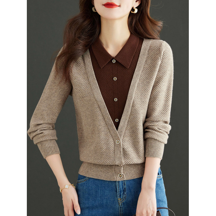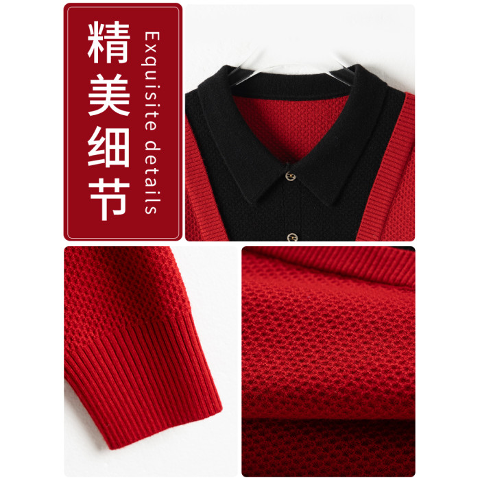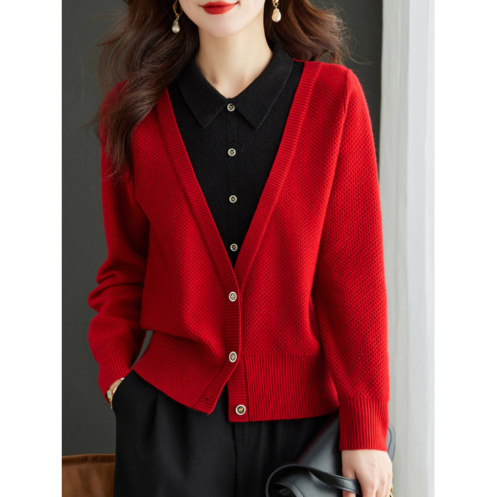 假兩件上衣女春秋2025新款紅色毛衣大碼蛇年本命年衣服針織打底衫