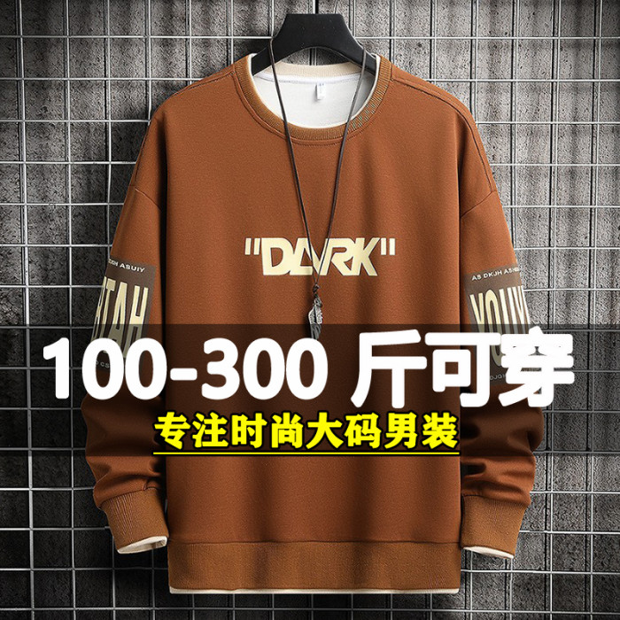 衛衣男秋季加肥加大碼潮牌胖子帥氣長袖圓領套頭寬松上衣服打底衫