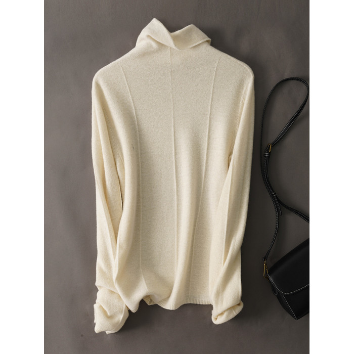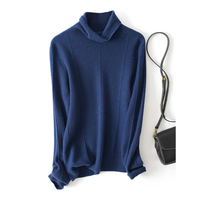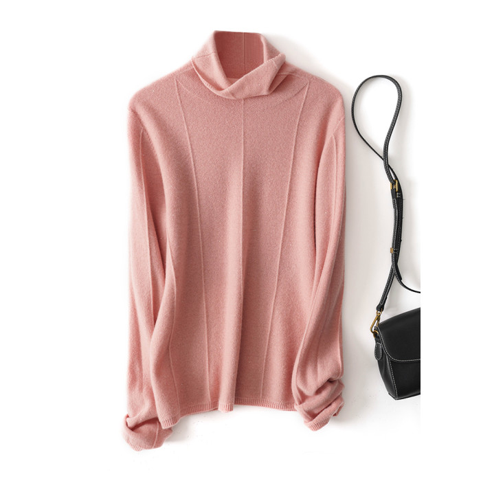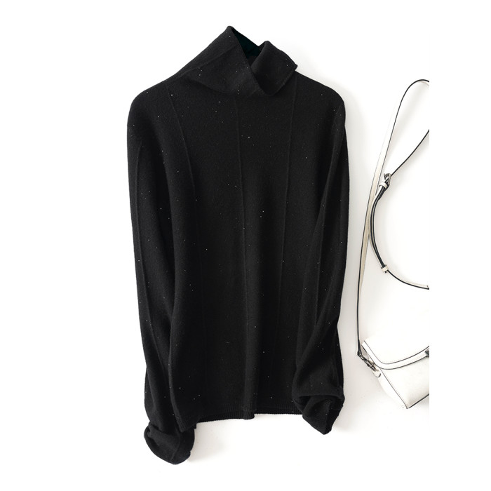 上身JU美 秋冬新款堆堆領無縫一體成衣亮絲針織衫綿羊毛打底衫女