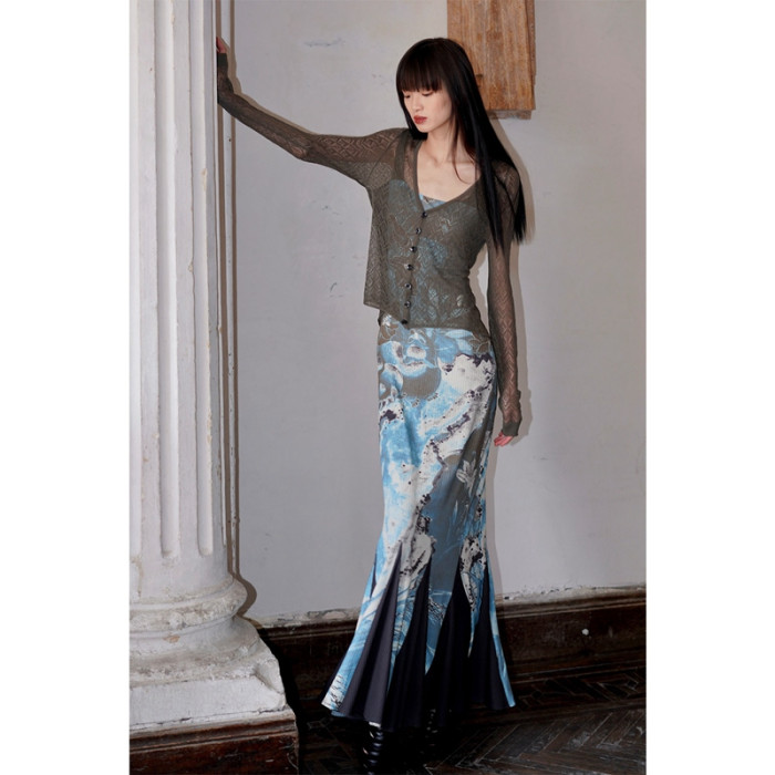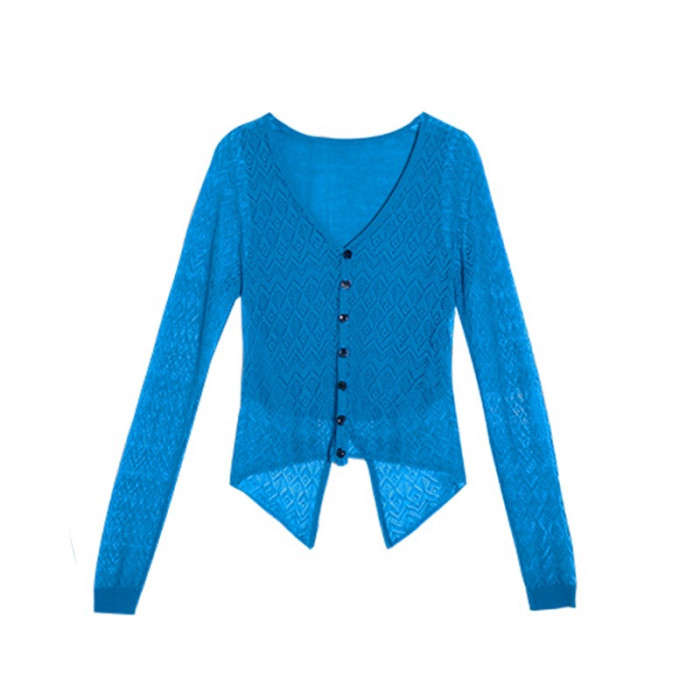 辣妹風鏤空V領防曬針織開衫披肩上衣夏季冰絲後開叉設計感打底衫