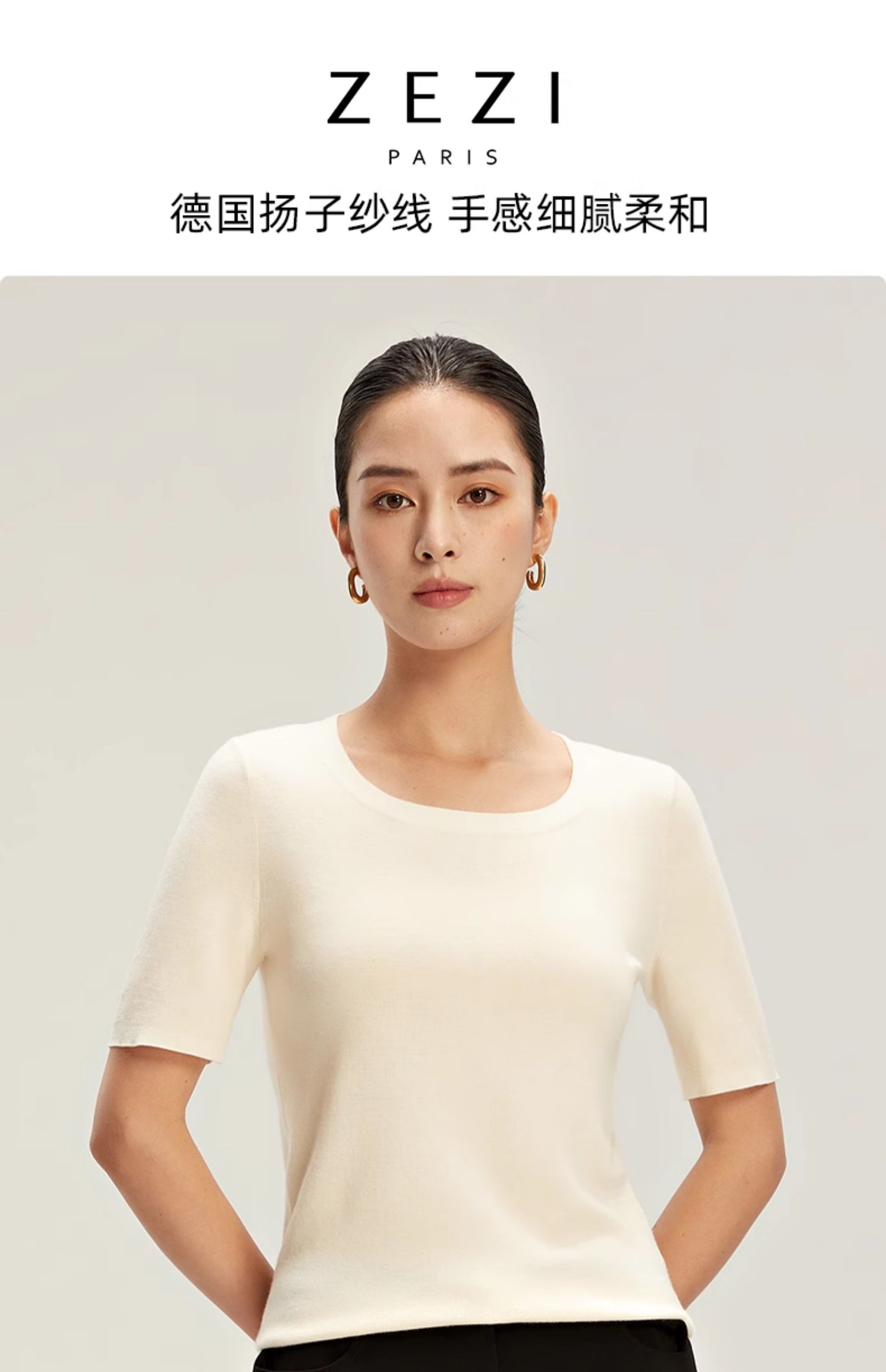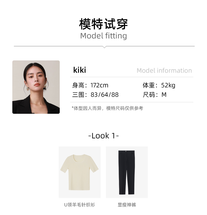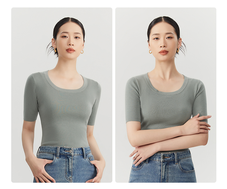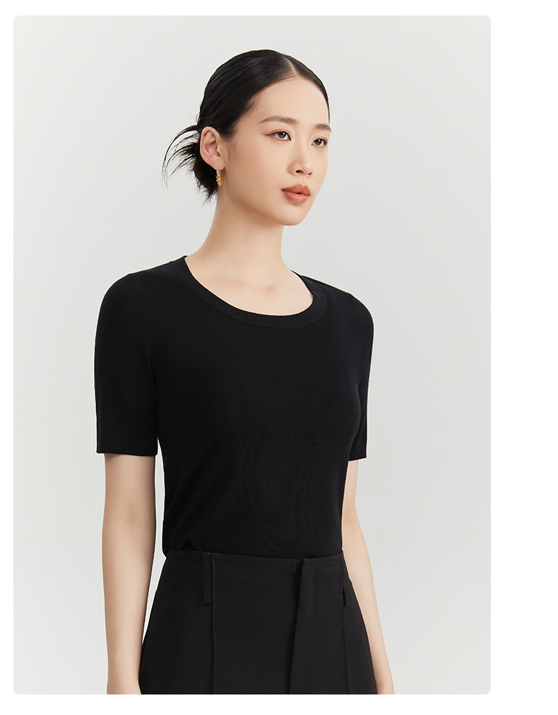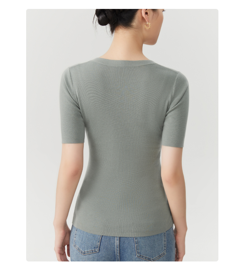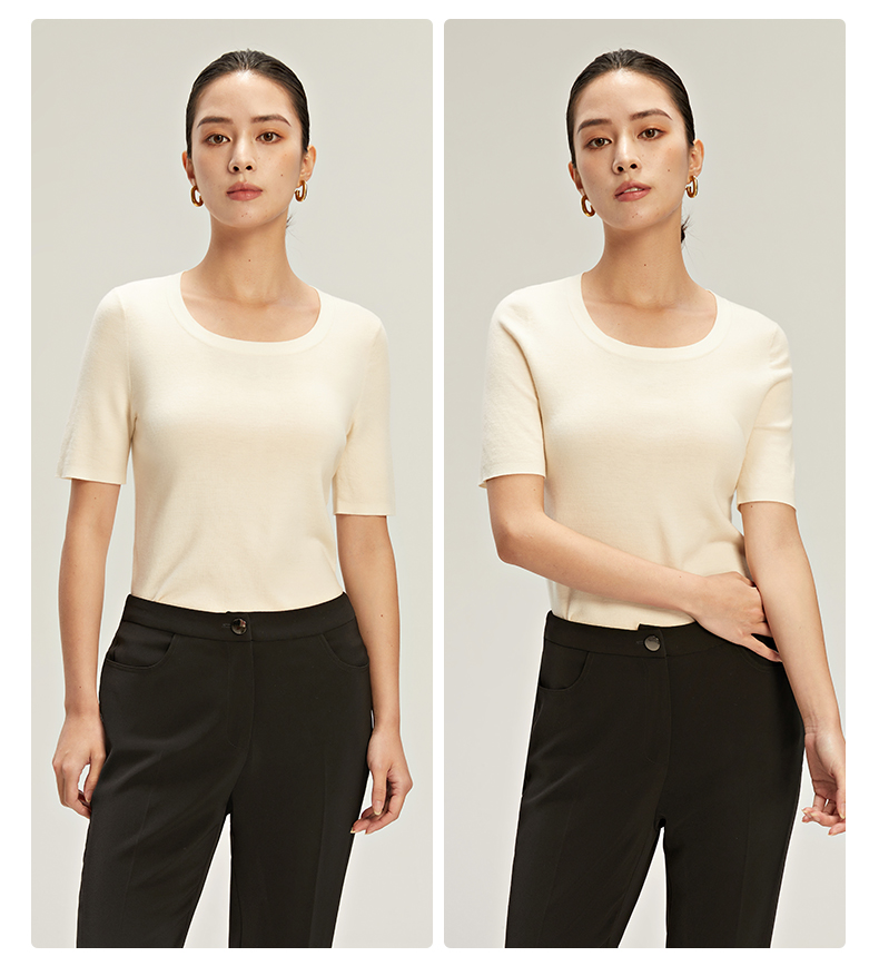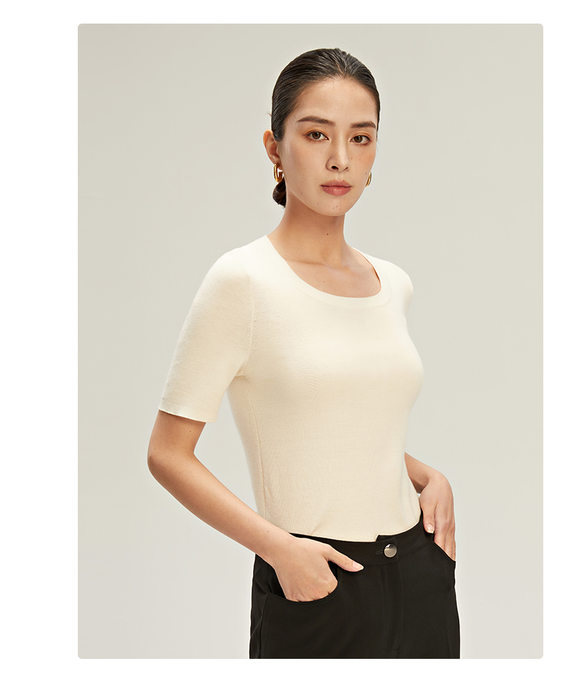 zezi羊毛u領針織衫短袖女羊毛衫100純羊毛春秋緊身打底衫低領短袖