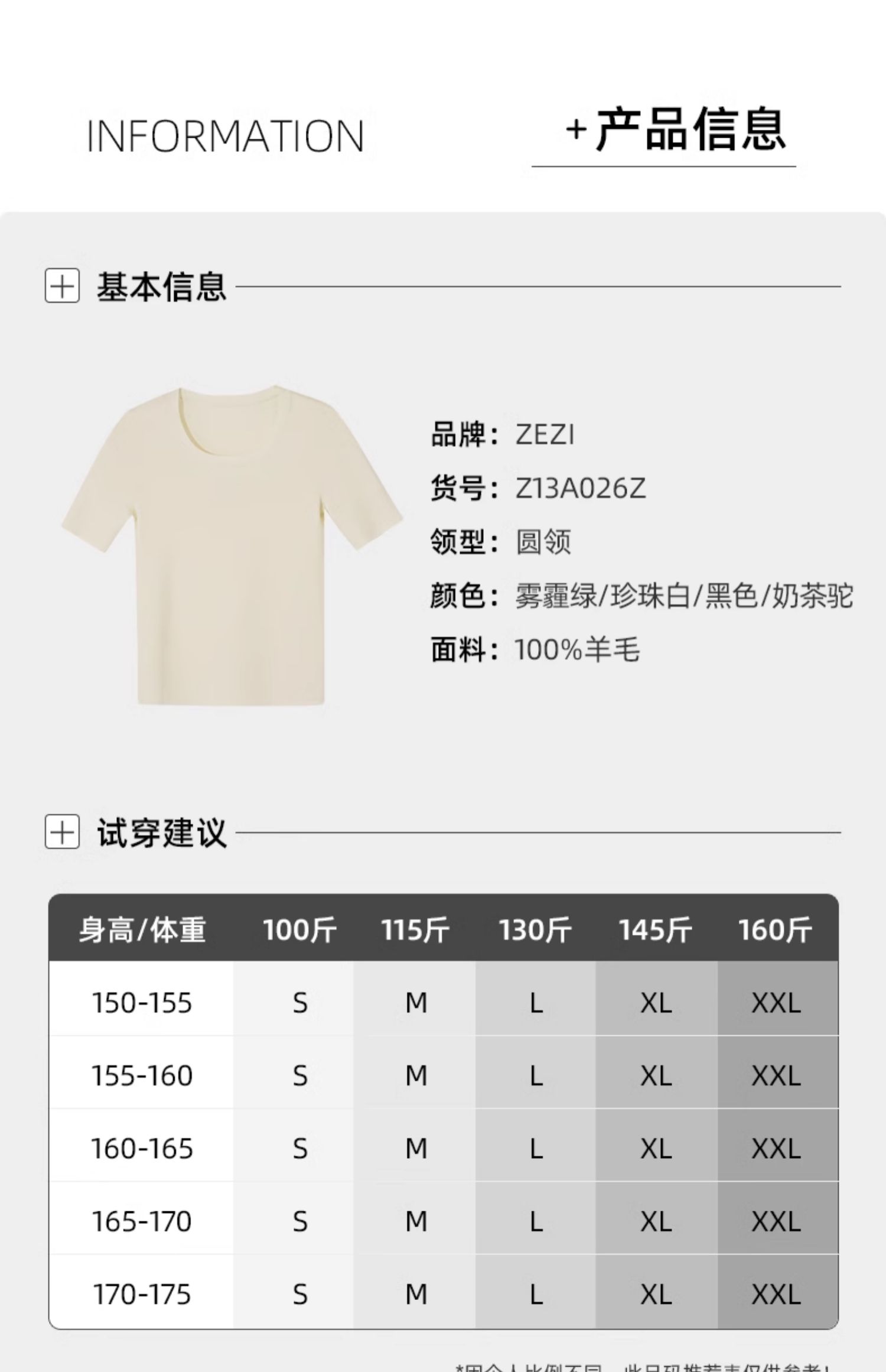 款式及尺寸: