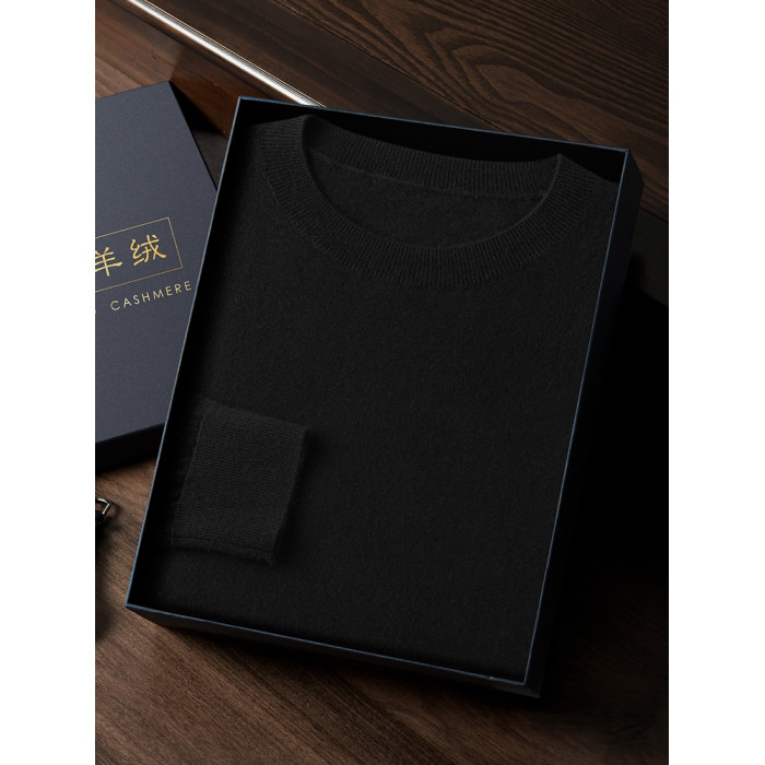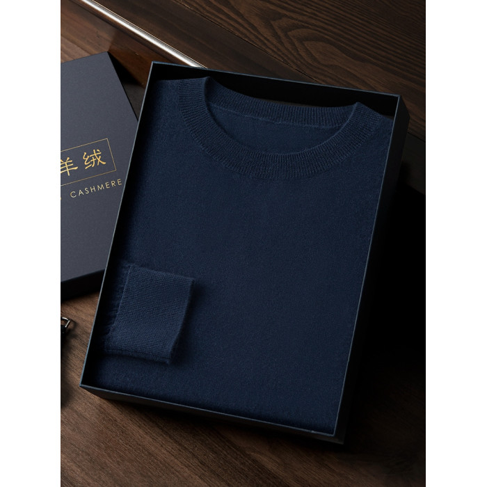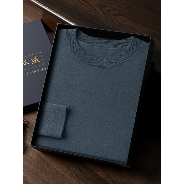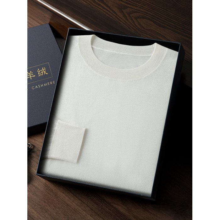 羊絨衫男100%純山羊絨薄款精紡圓領純色貼身穿柔軟毛衣針織打底衫