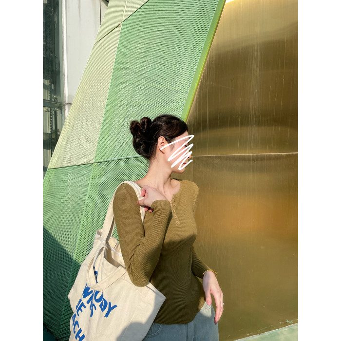 QCyoye秋冬新針織打底衫修身顯瘦保暖內衣小心機設計感百搭上衣女
