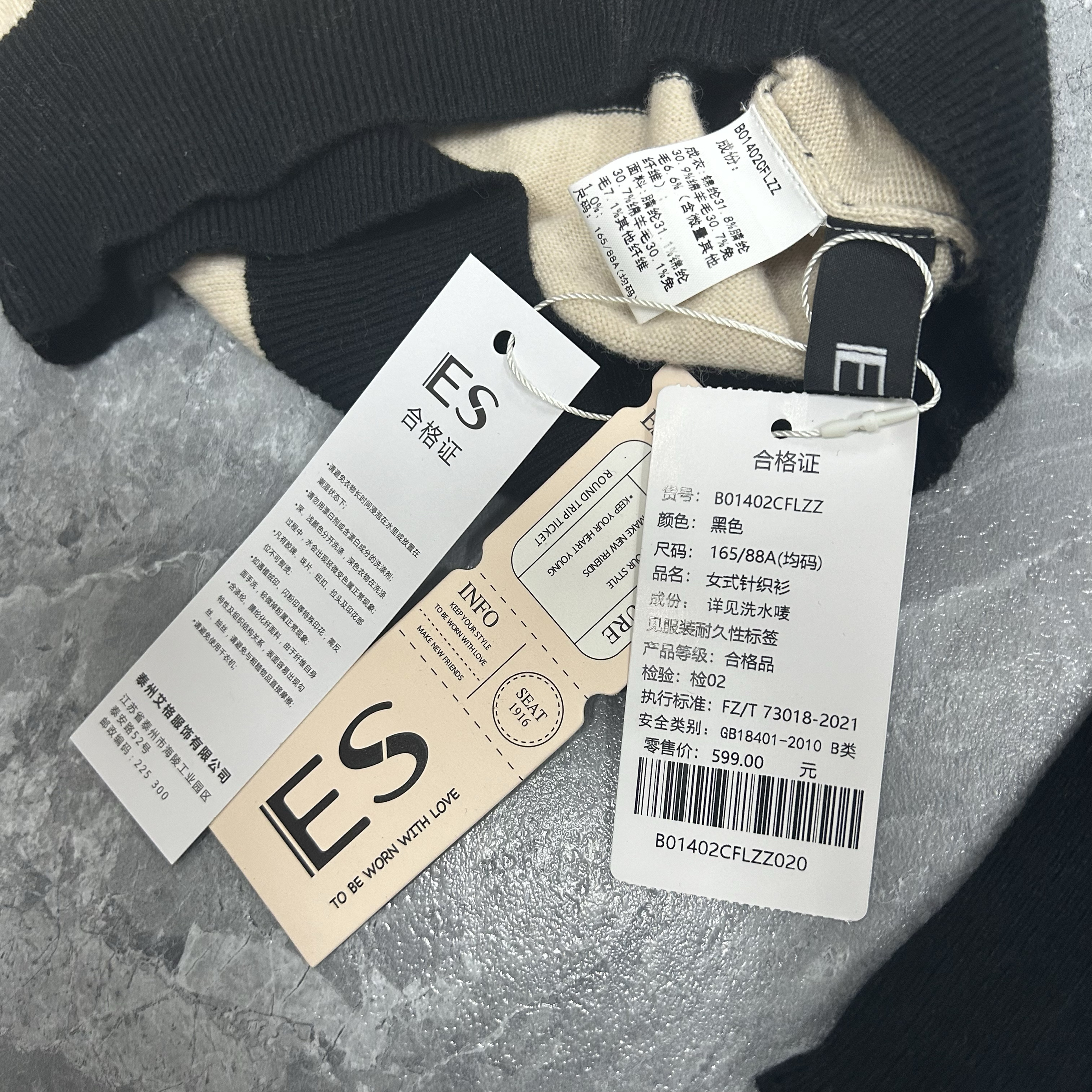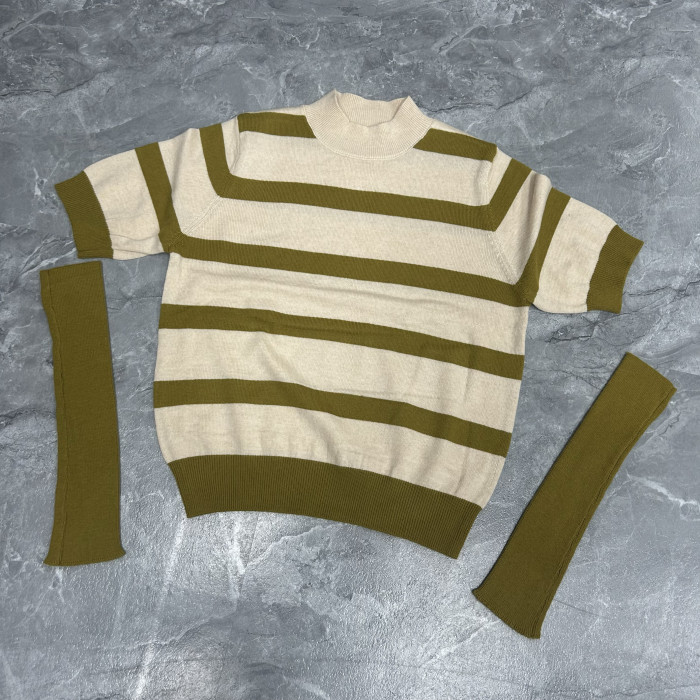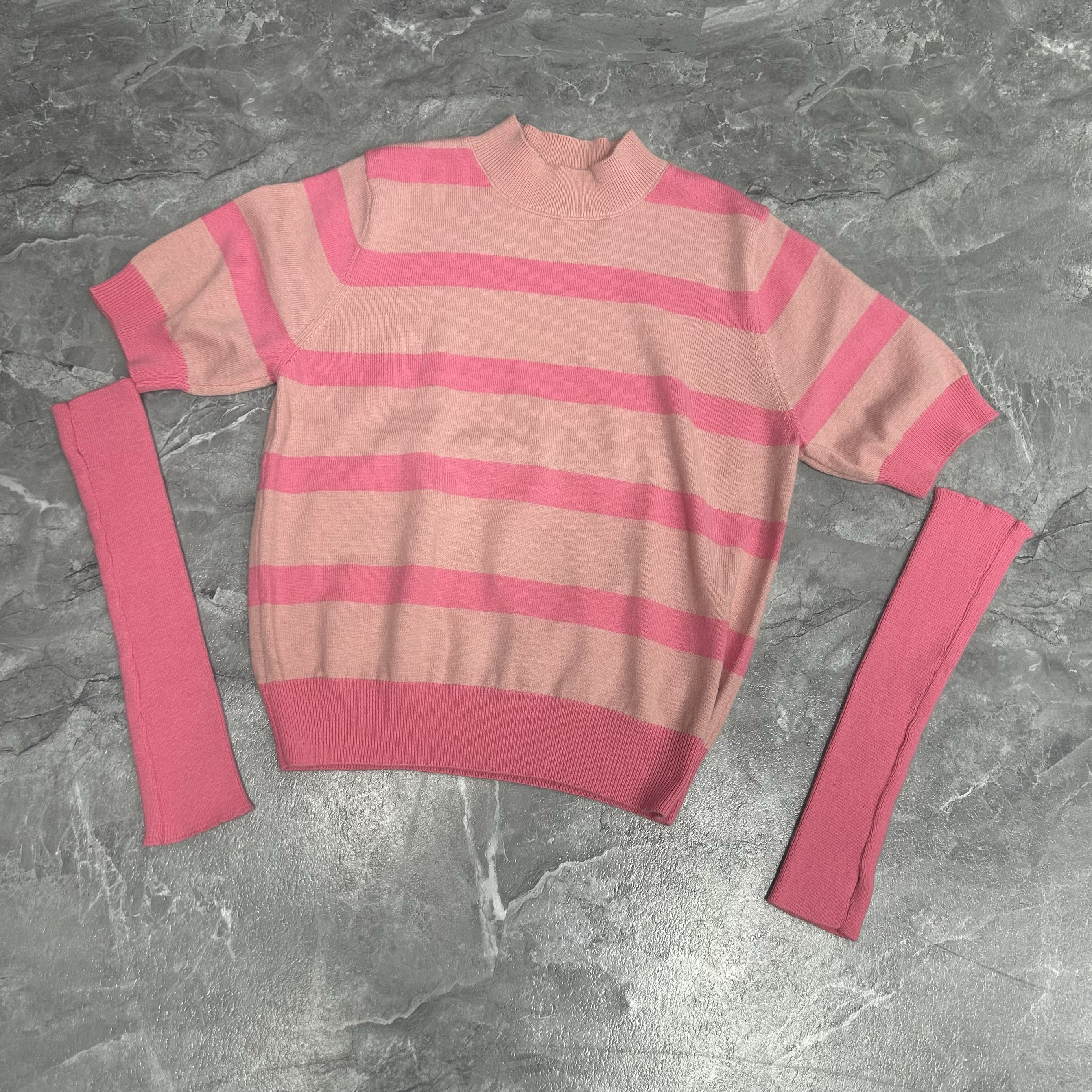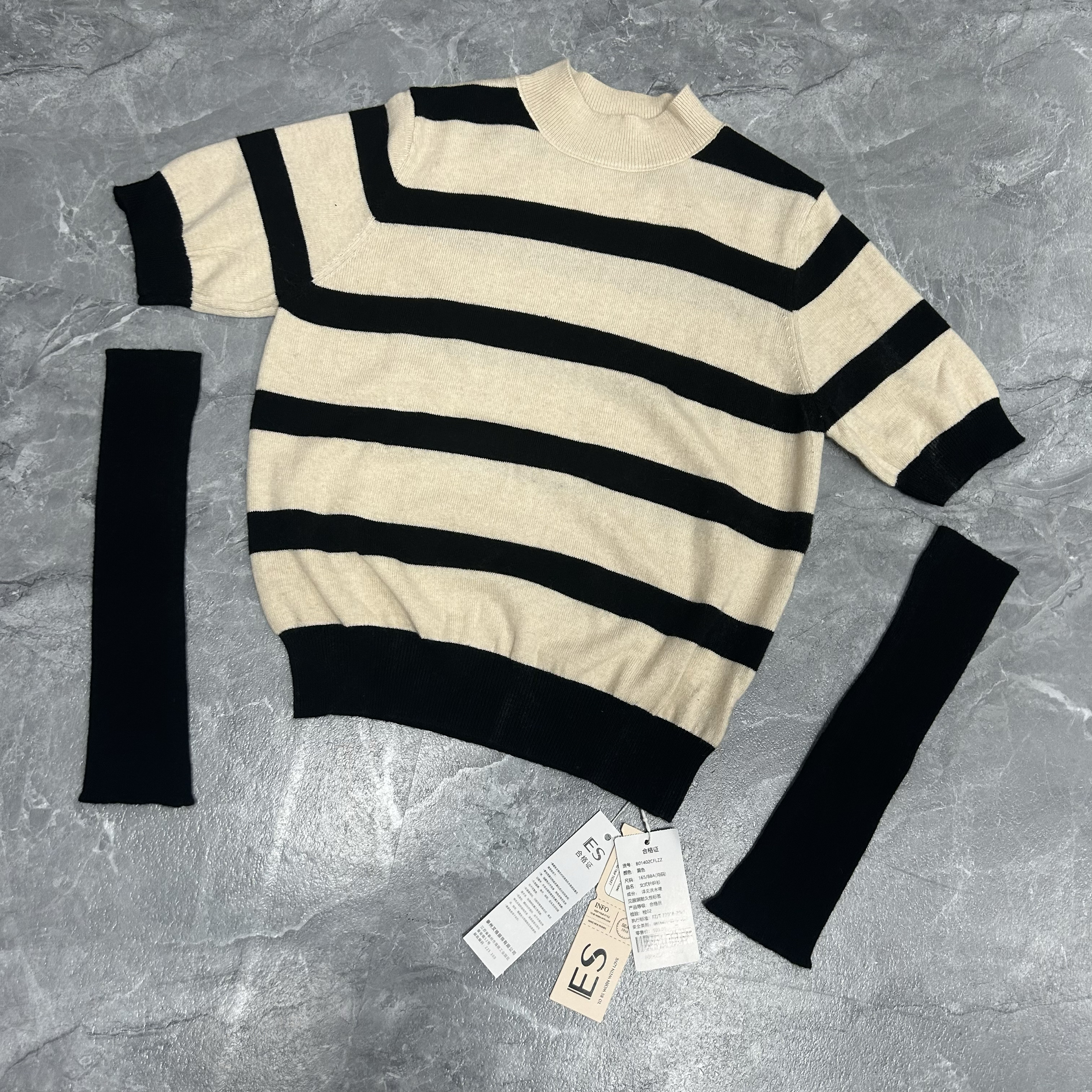 5.1艾G 剪標 毛衣針織衫女士上衣套頭短袖套袖條紋紅色打底衫