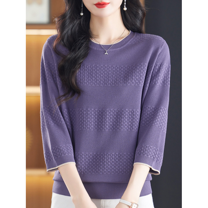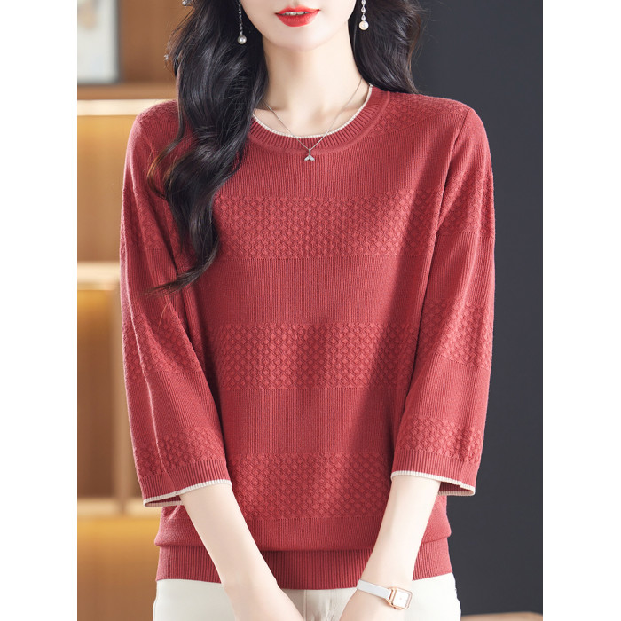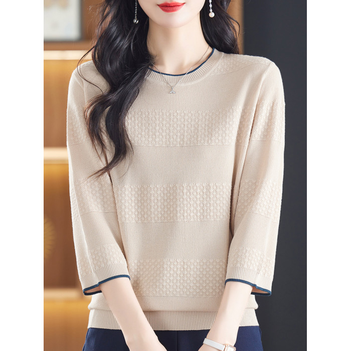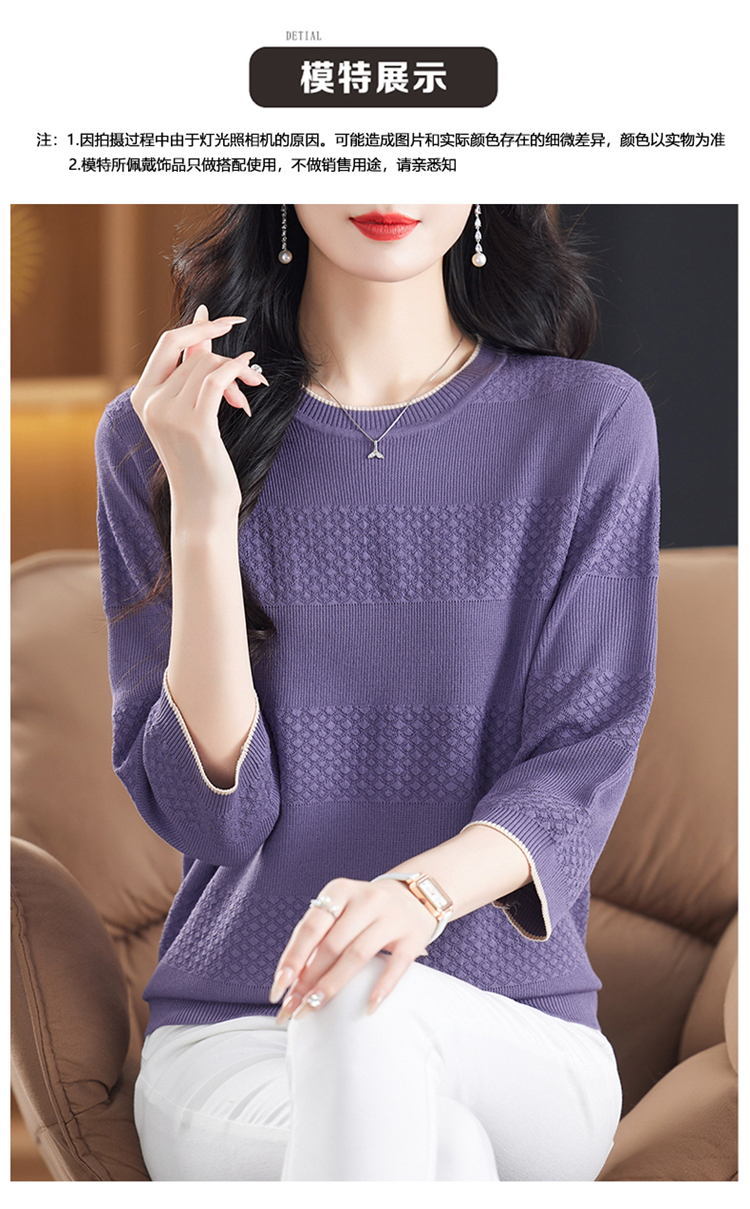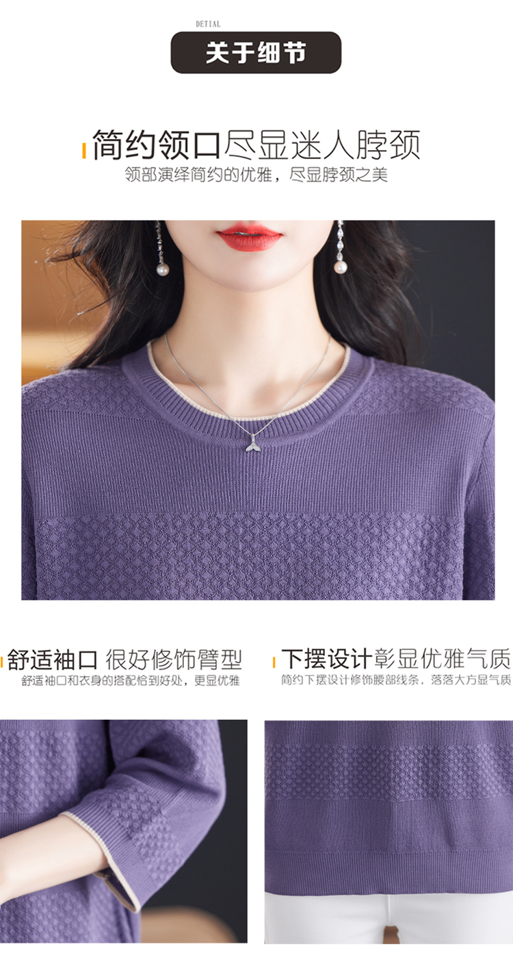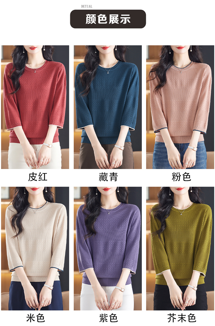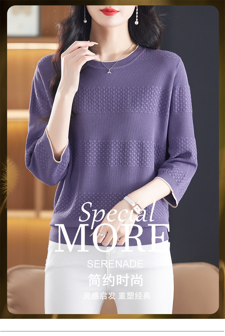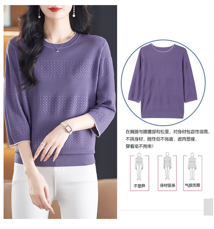 冰絲針織衫上衣女秋季新款媽媽裝寬松大碼洋氣小衫薄款中袖打底衫