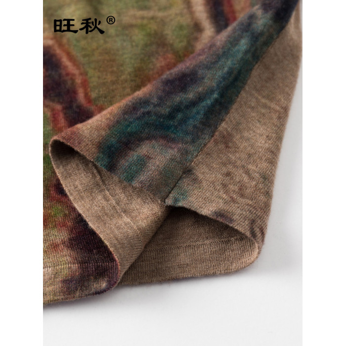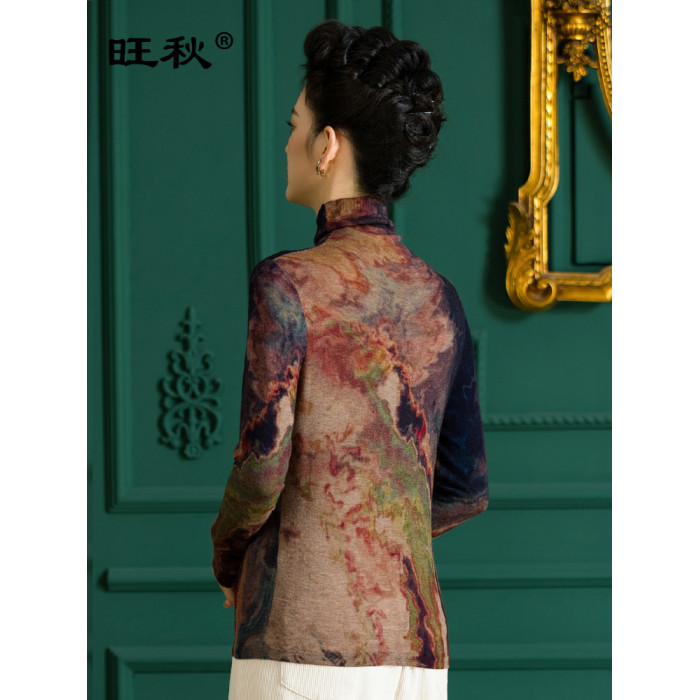 高檔薄款水溶羊毛衫女春秋套頭長袖精紡打底衫氣質媽媽裝印花毛衣