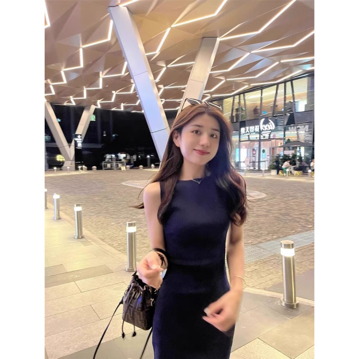 梨形身材春季氣質包臀收腰顯瘦修身無袖打底針織連衣裙背心短裙女