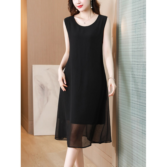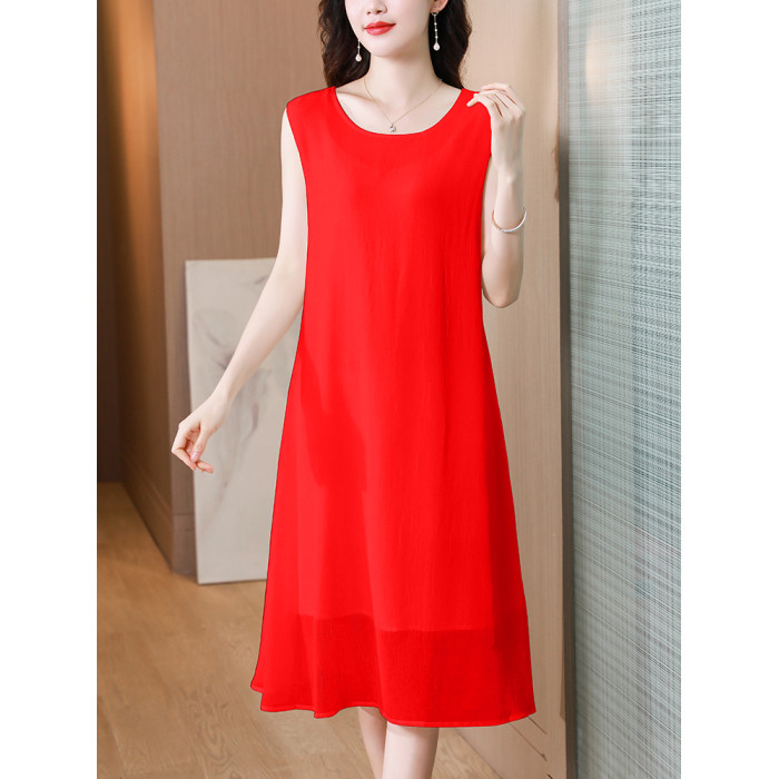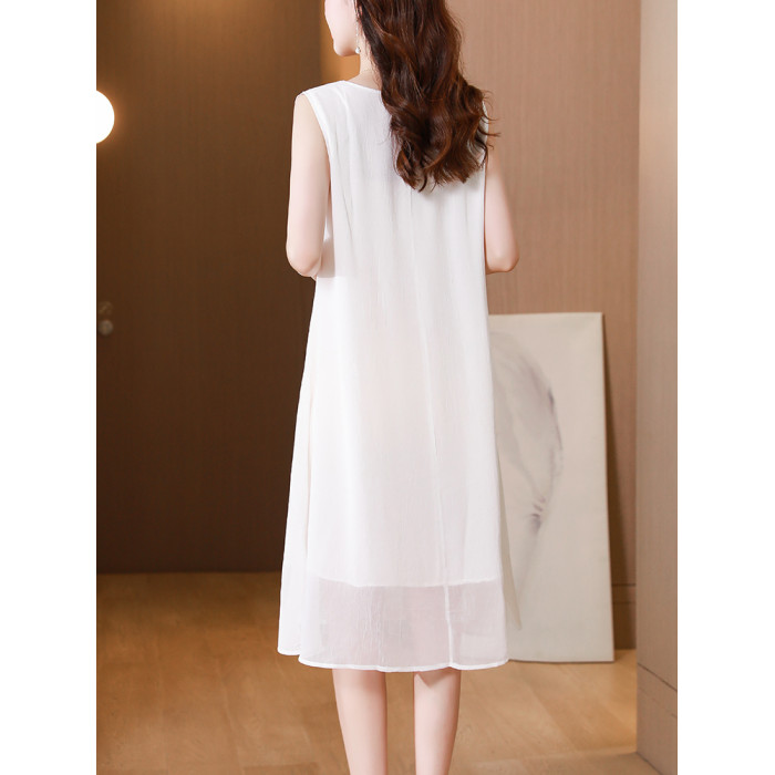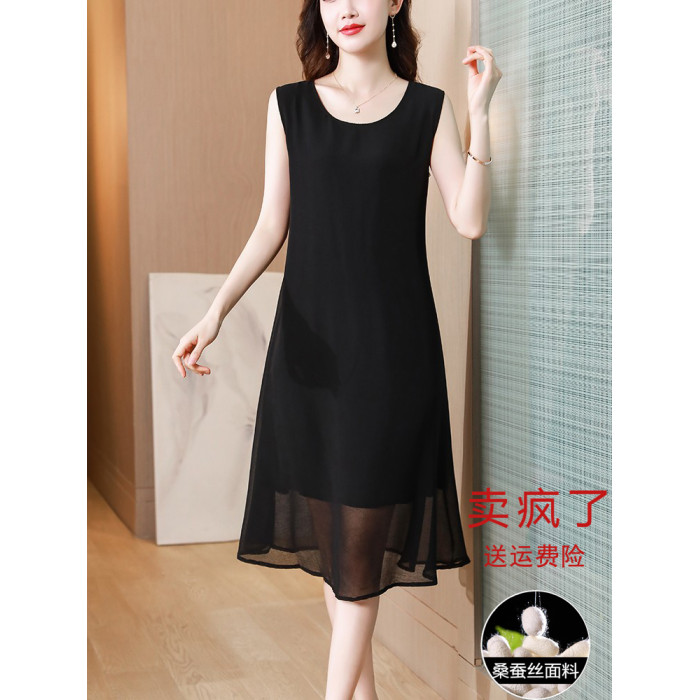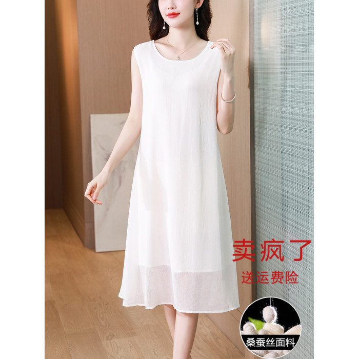 真絲吊帶裙夏季內搭長款打底裙外穿寬松桑蠶絲無袖背心連衣裙飄逸