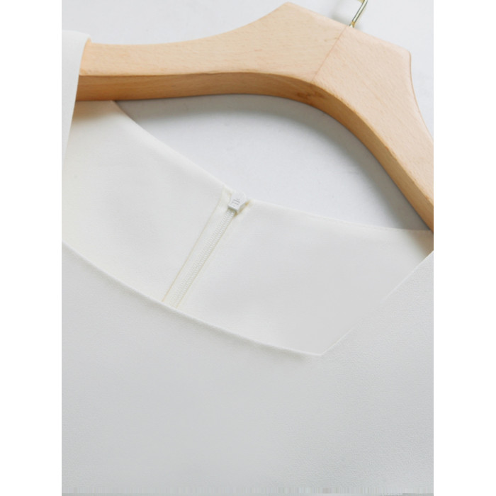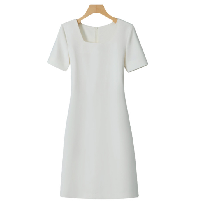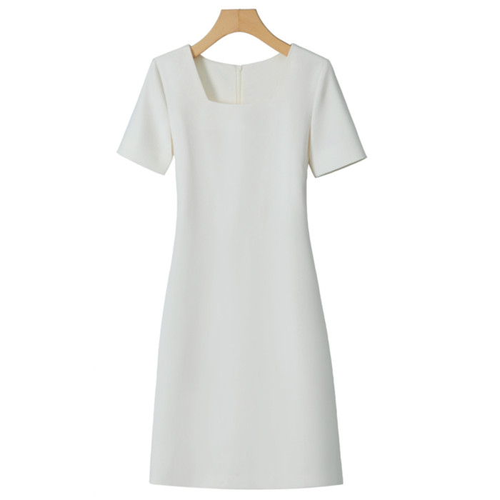 法式方領簡約短袖連衣裙2025夏季新款高級感氣質直筒收腰A字裙女
