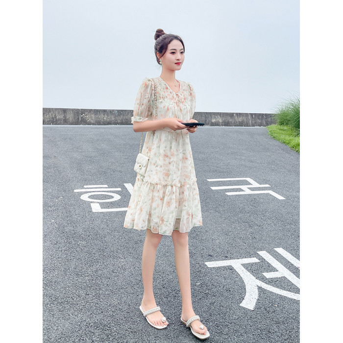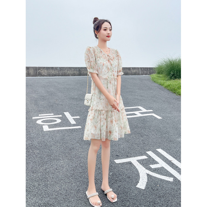碎花連衣裙女夏季2025新款法式氣質溫柔風雪紡裙子仙女超仙小個子