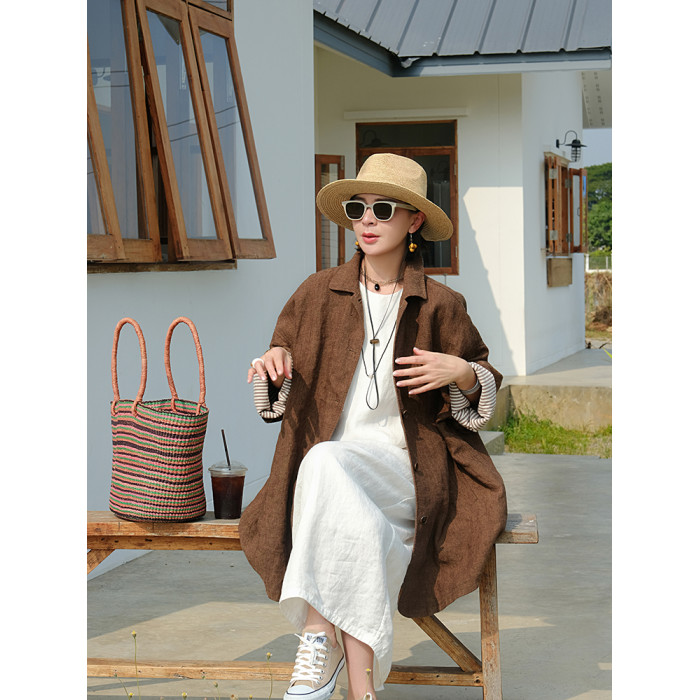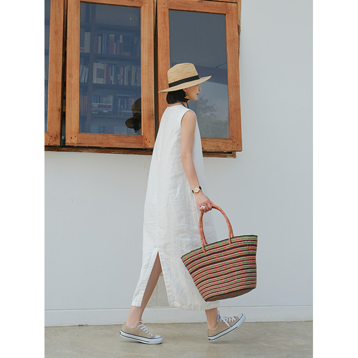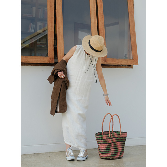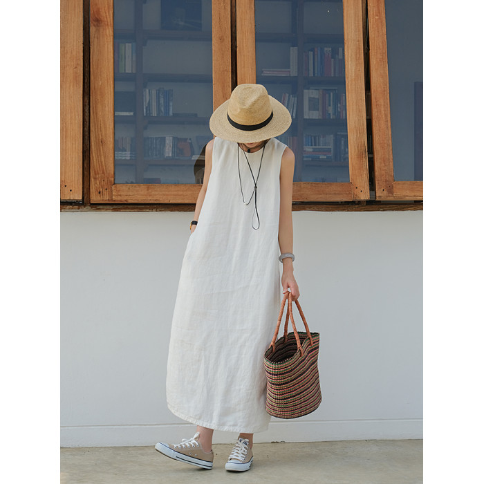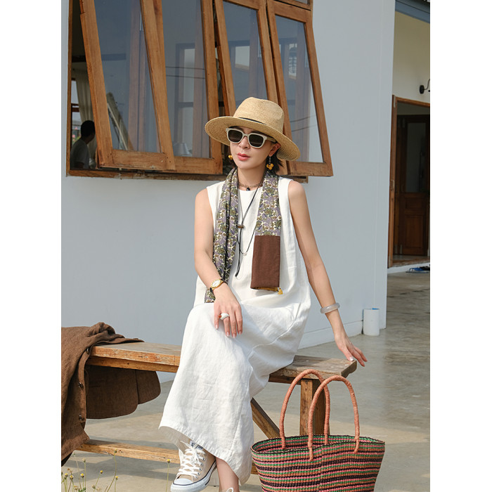 麻霖女裝2025春夏新品高品質漢麻時尚清涼無袖繭型套頭長款連衣裙