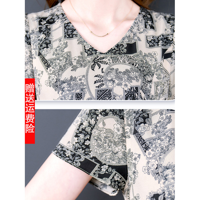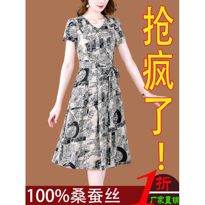 真絲連衣裙2025新款女夏季洋氣印花媽媽裝高級精緻收腰桑蠶絲裙子