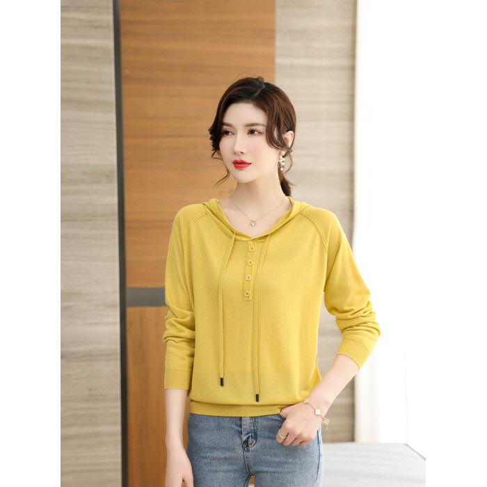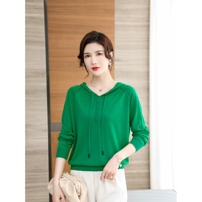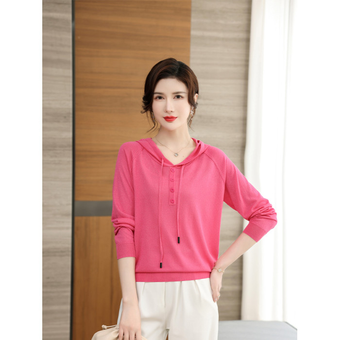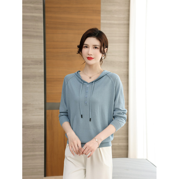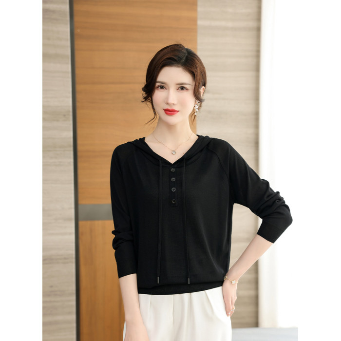 冰絲針織打底衫女士春夏季連帽薄款上衣2025新款T恤媽媽長袖衛衣