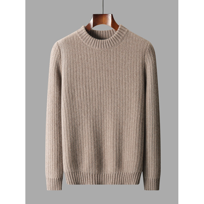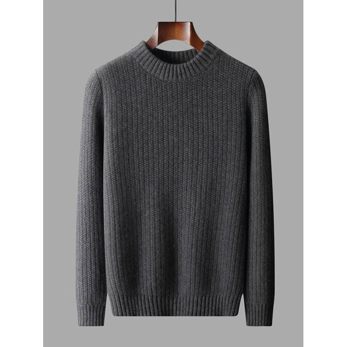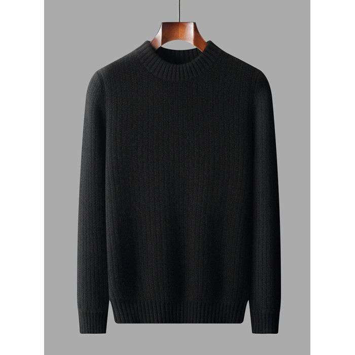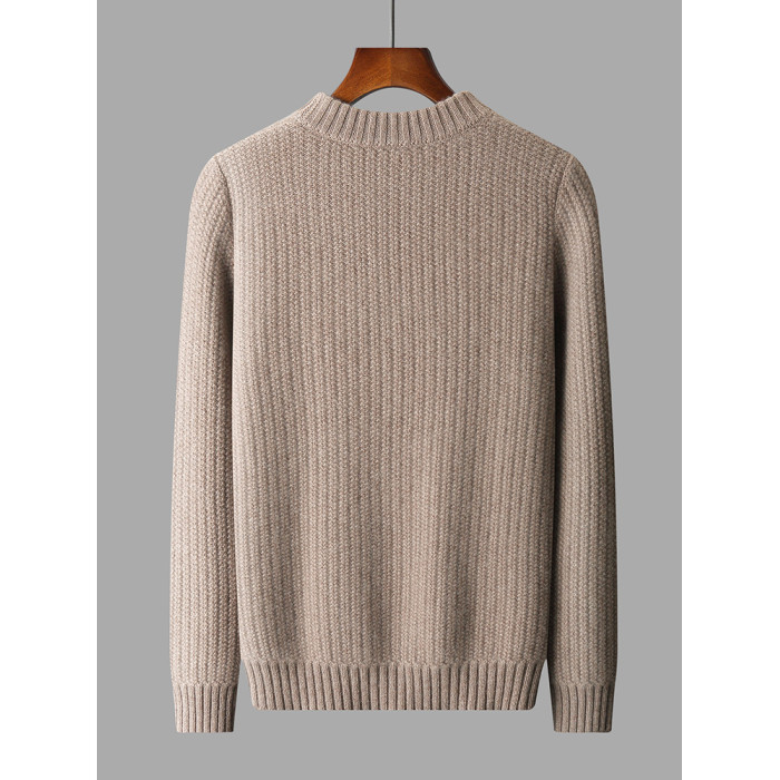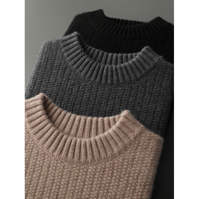100%純山羊絨衫男圓領三股加厚保暖元寶針時尚毛衣針織衫打底衫潮