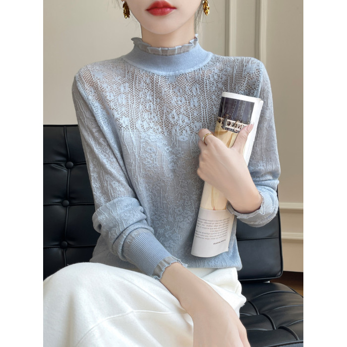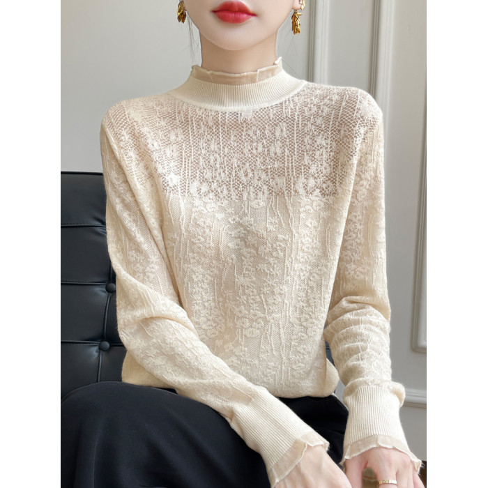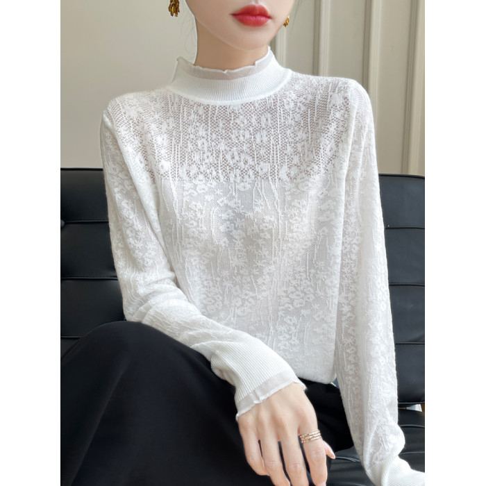 蕾絲打底衫女2025新款春秋半高領洋氣針織上衣加大碼女裝秋冬毛衣