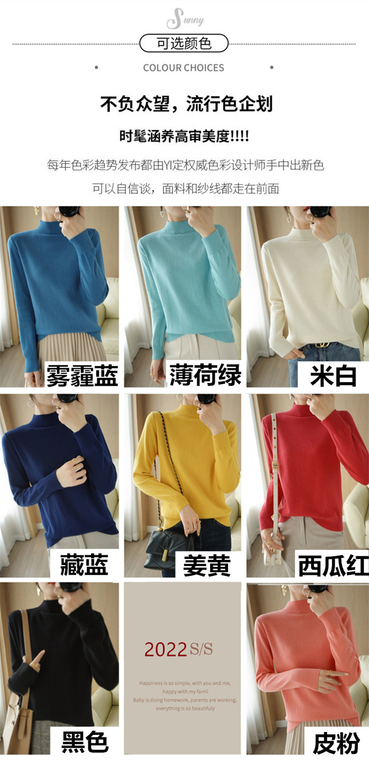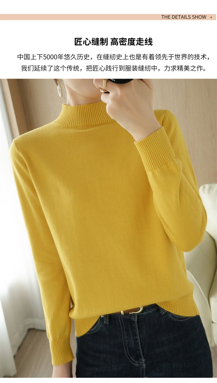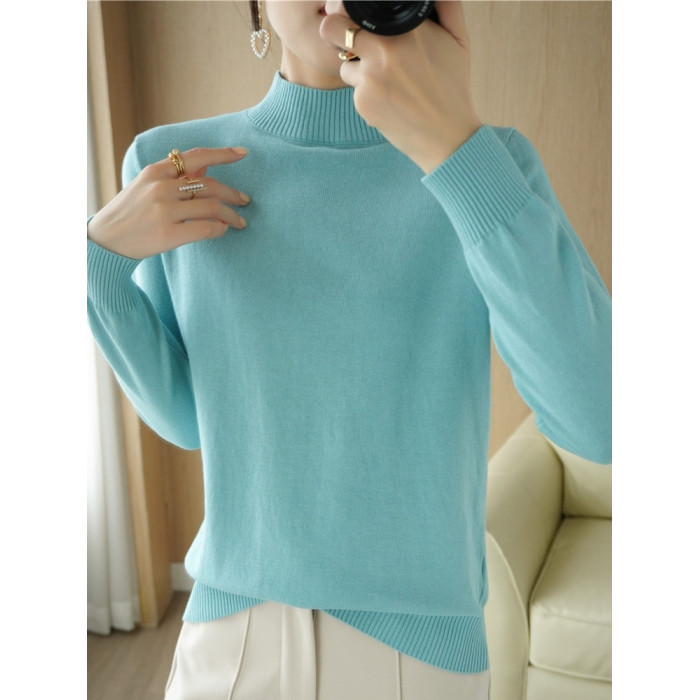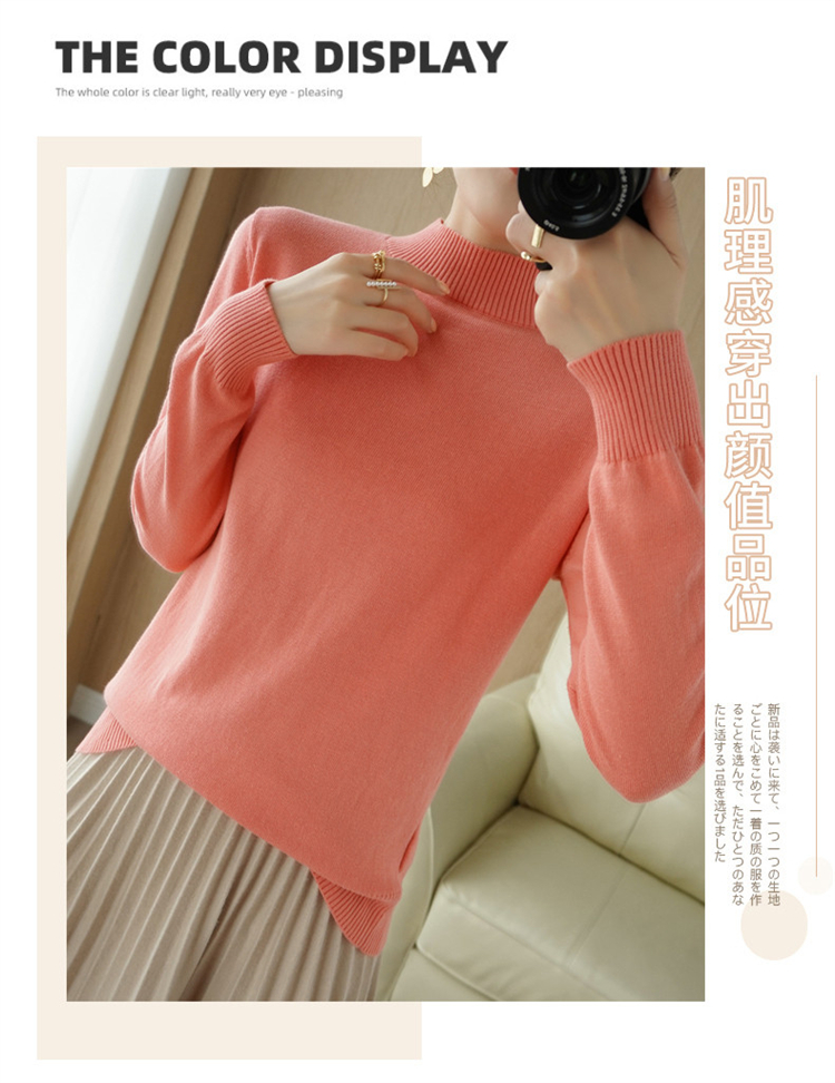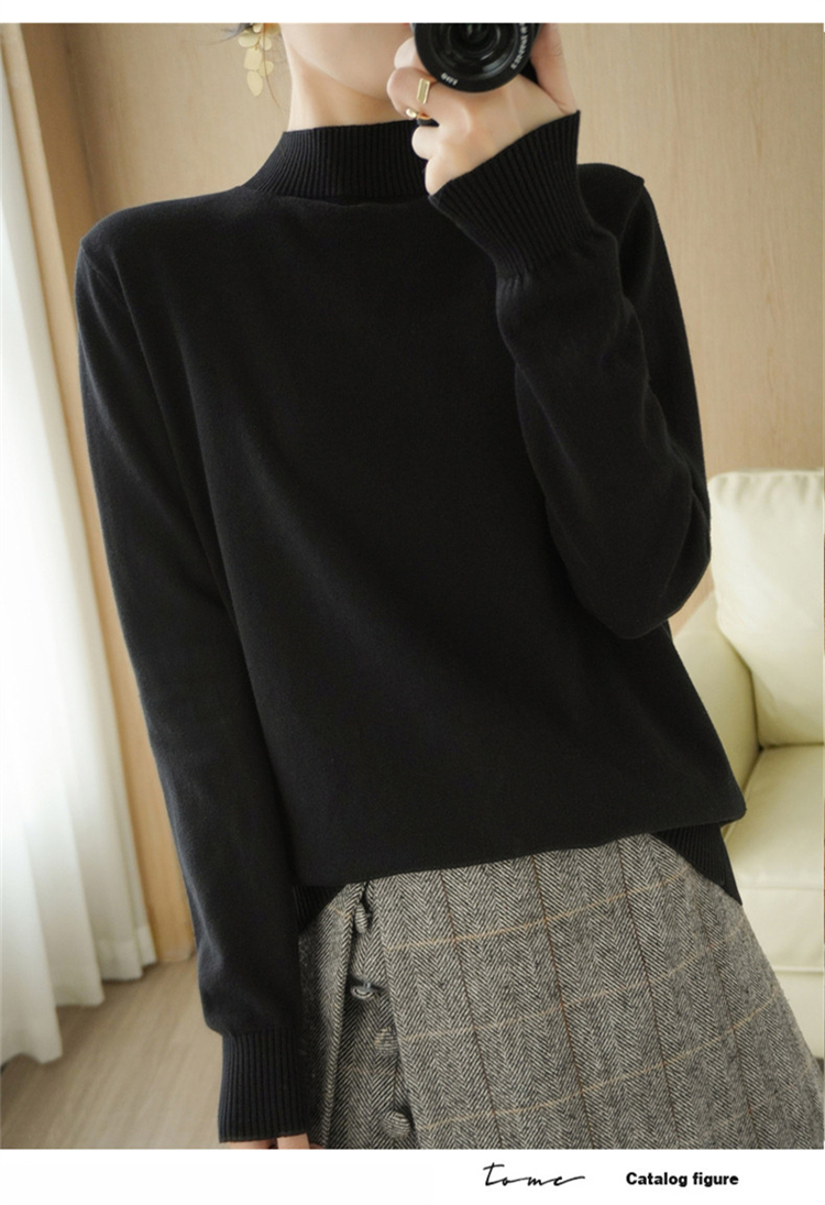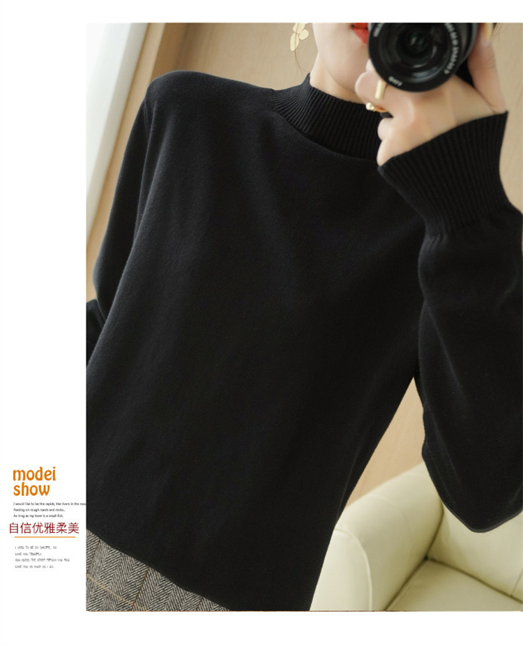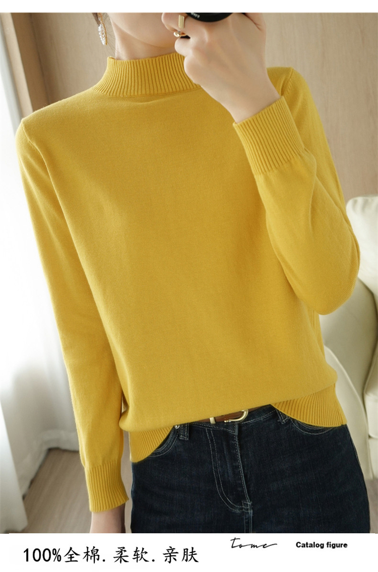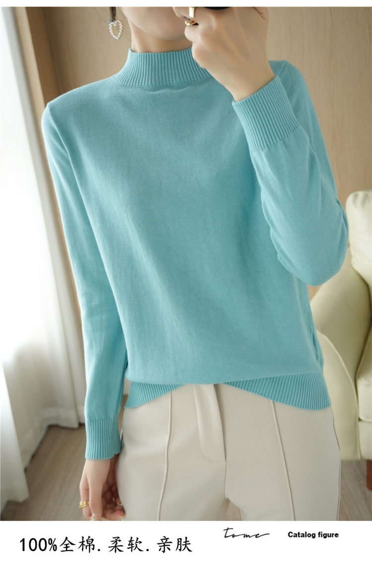 100%純棉針織衫女半高領秋冬新款長袖寬松百搭套頭全棉打底衫毛衣