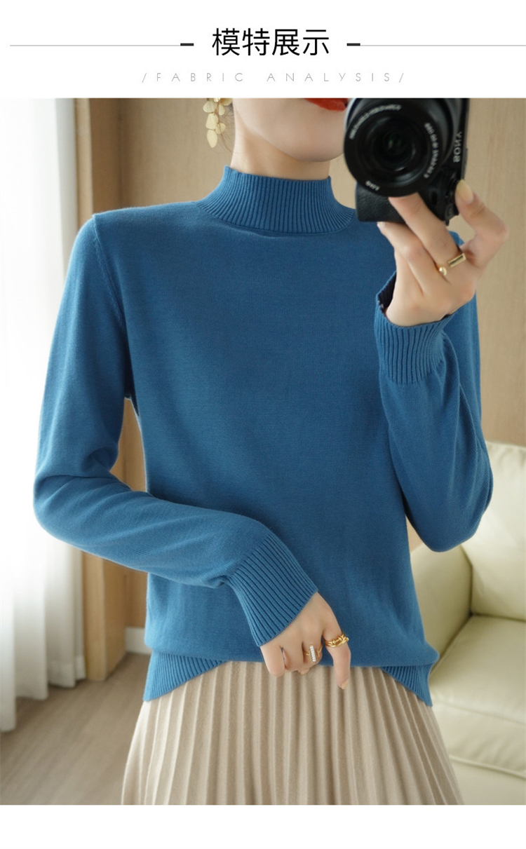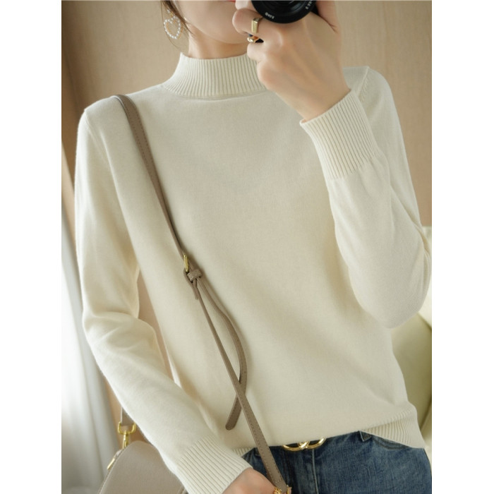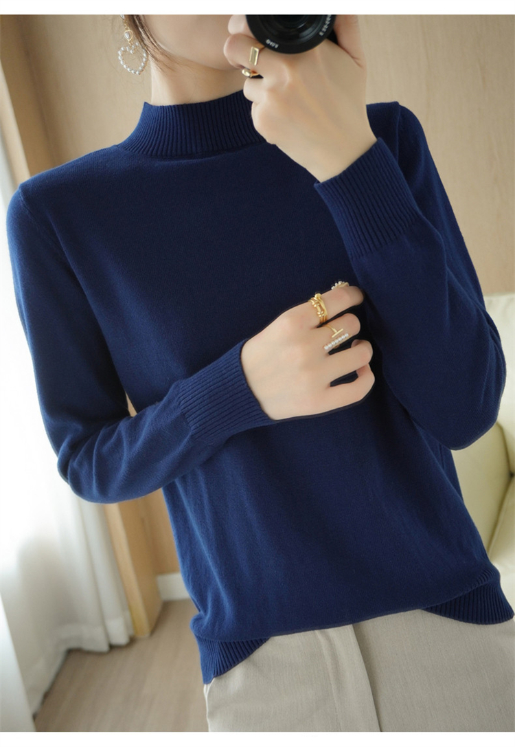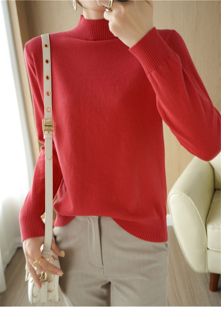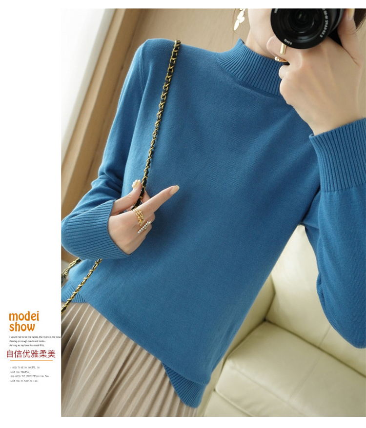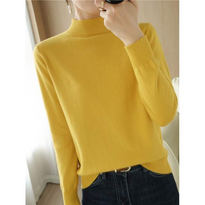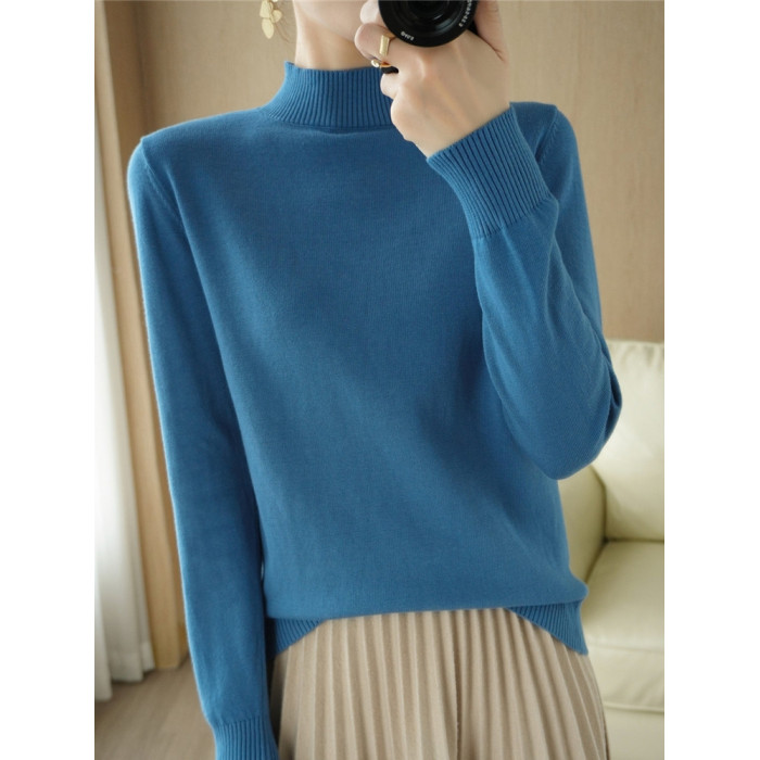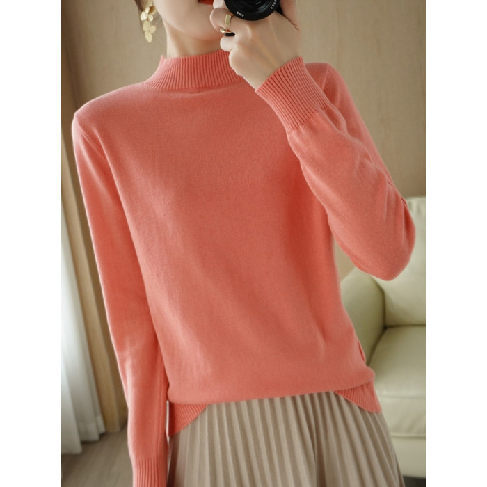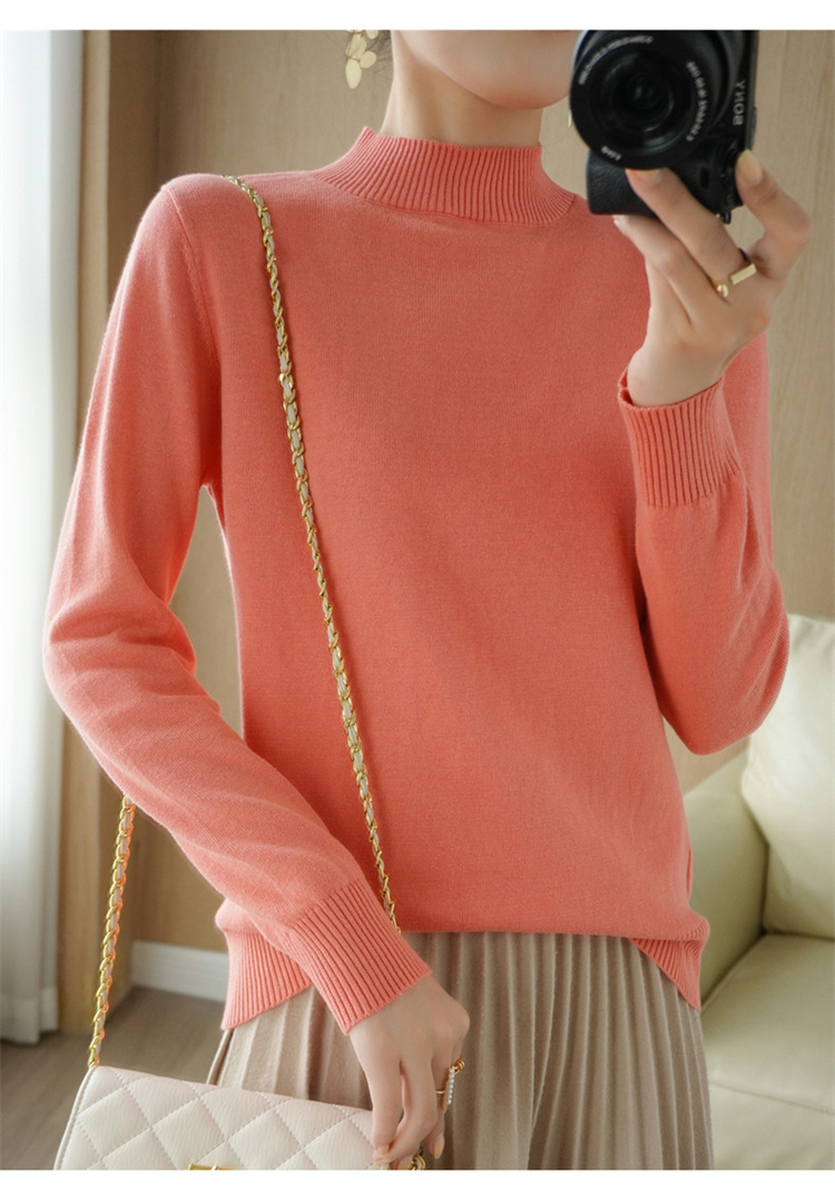 100%純棉針織衫女半高領秋冬新款長袖寬松百搭套頭全棉打底衫毛衣