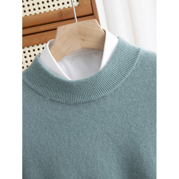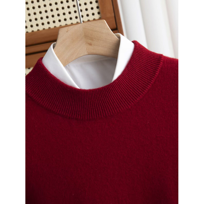 秋冬新款男士純羊毛衫圓領長袖毛衣寬松大碼中青年針織羊絨打底衫