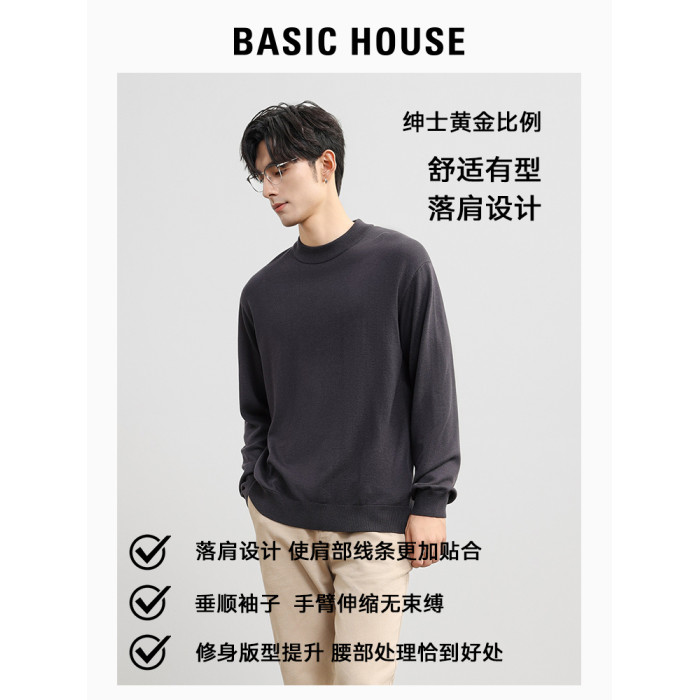Basic House/百家好秋冬含羊毛蠶絲針織衫男士打底衫薄款保暖毛衣