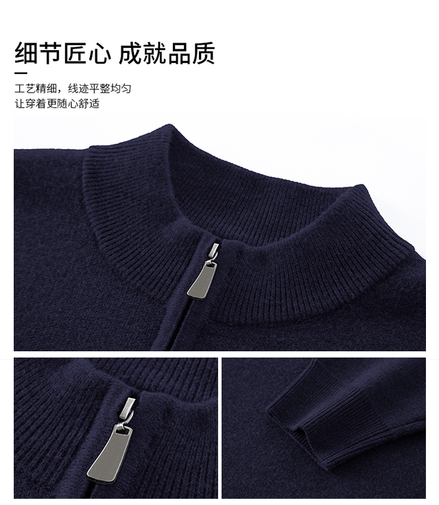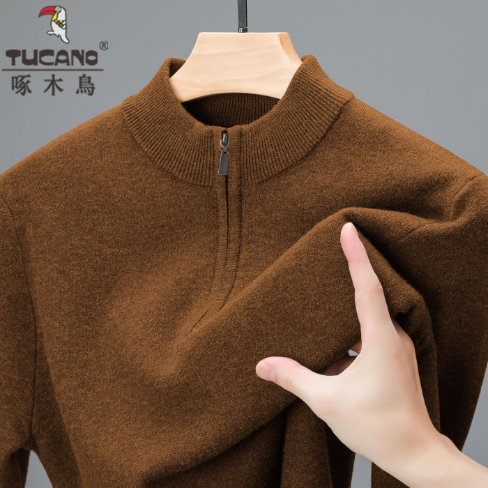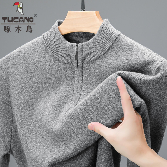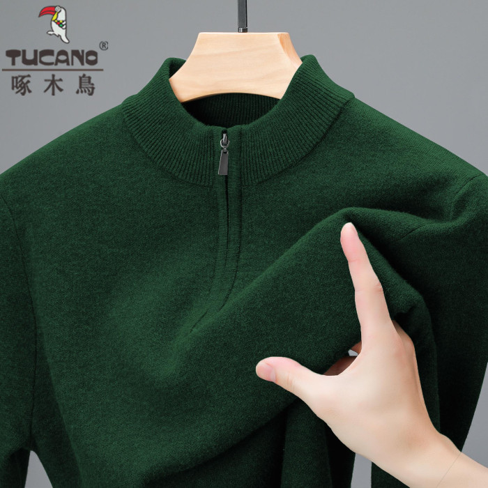 啄木鳥冬季羊毛衫男士加厚中年拉鍊半高領毛衣爸爸羊毛針織打底衫