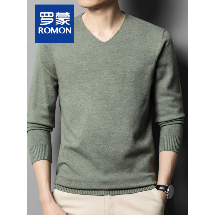 羅矇商務低V領毛衣男春秋款打底衫內搭針織毛衫男士2025上衣