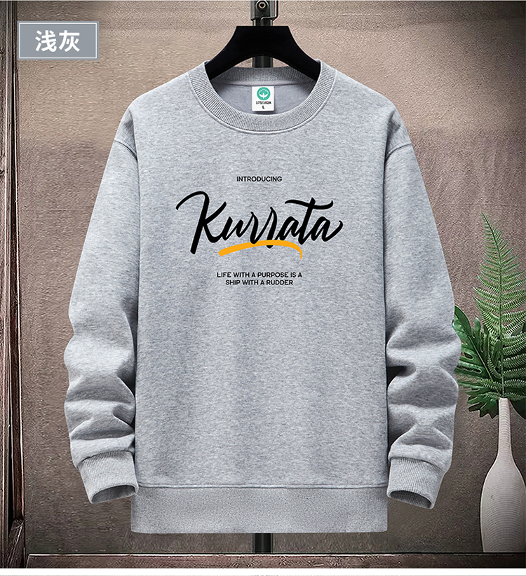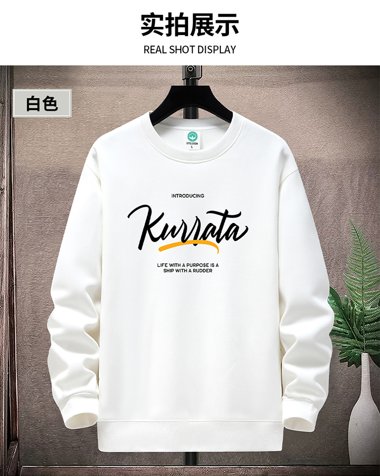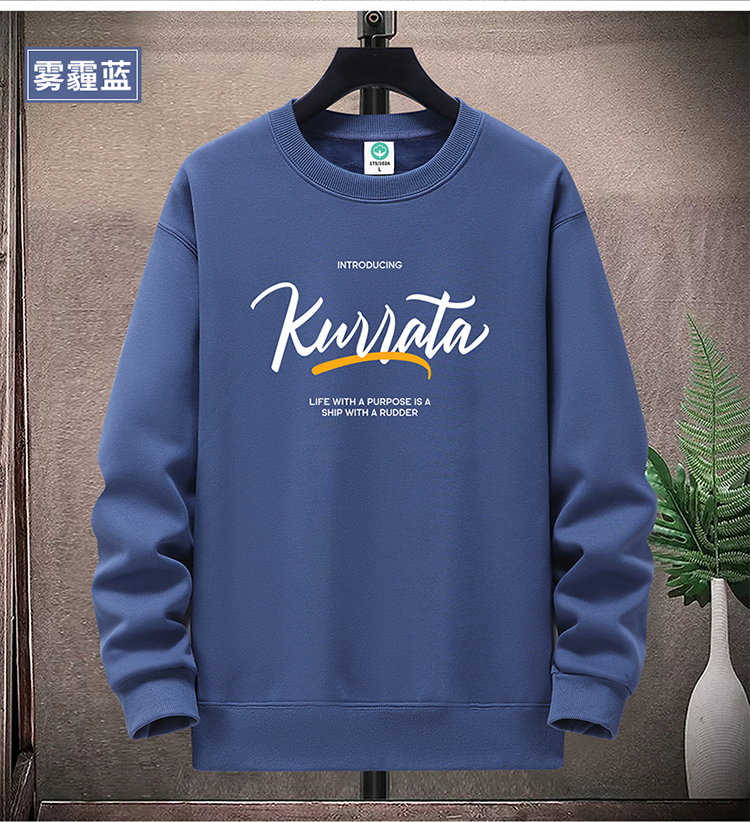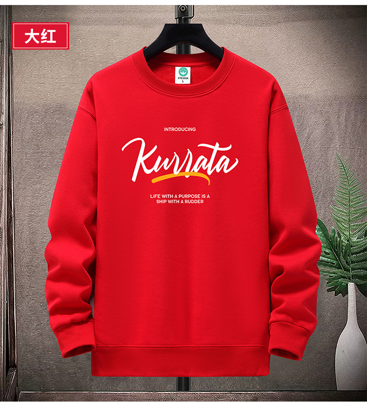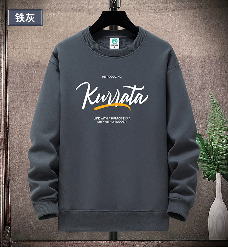 純棉加絨衛衣男圓領青少年時尚潮流套頭打底衫加厚保暖秋冬上衣服