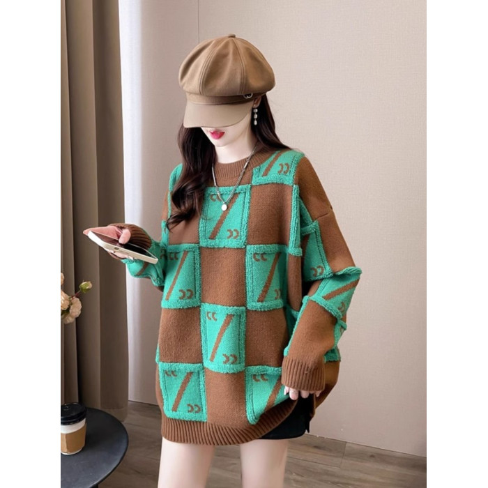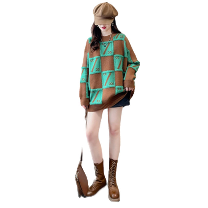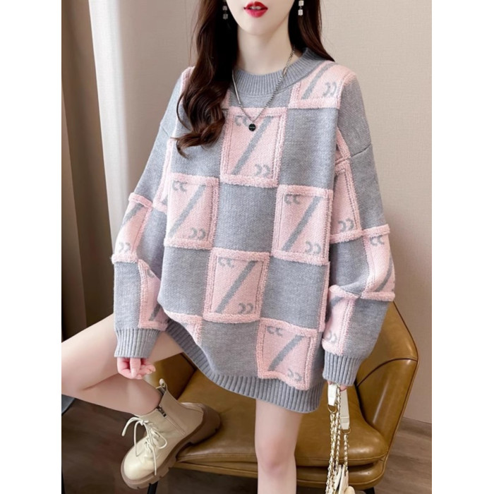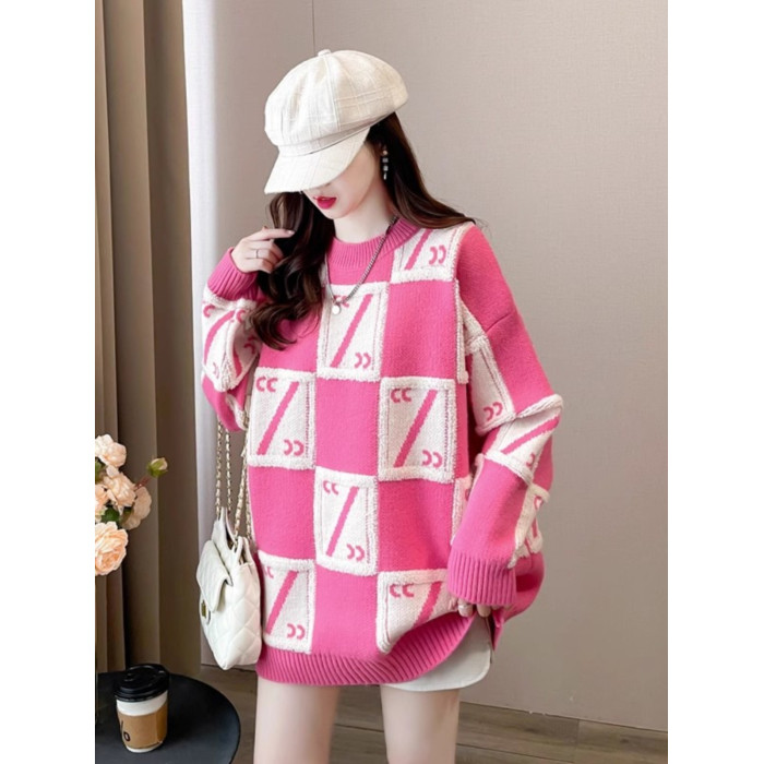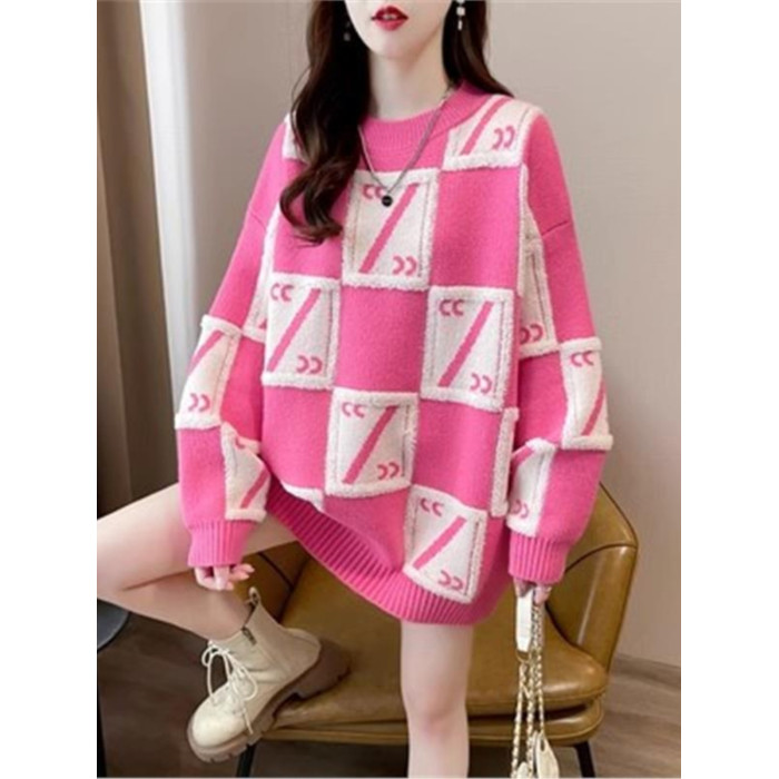 中長款套頭毛衣女裝春秋季高中初中學生寬松慵懶風針織打底衫上衣