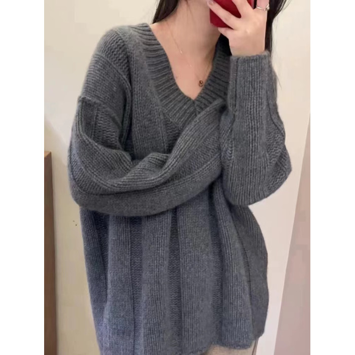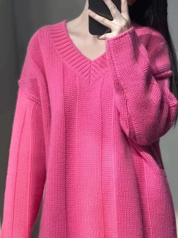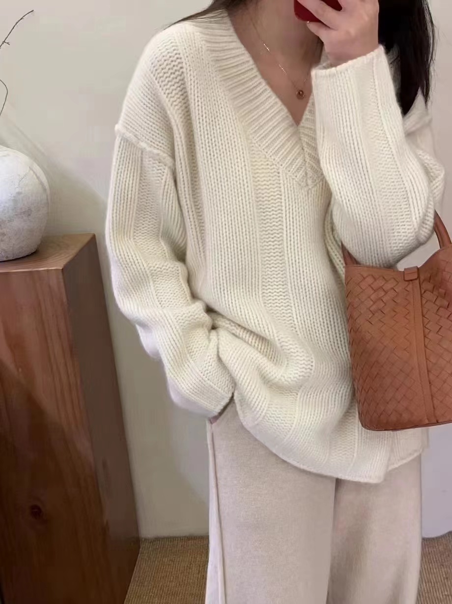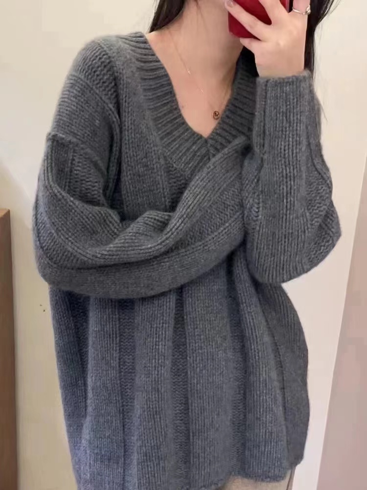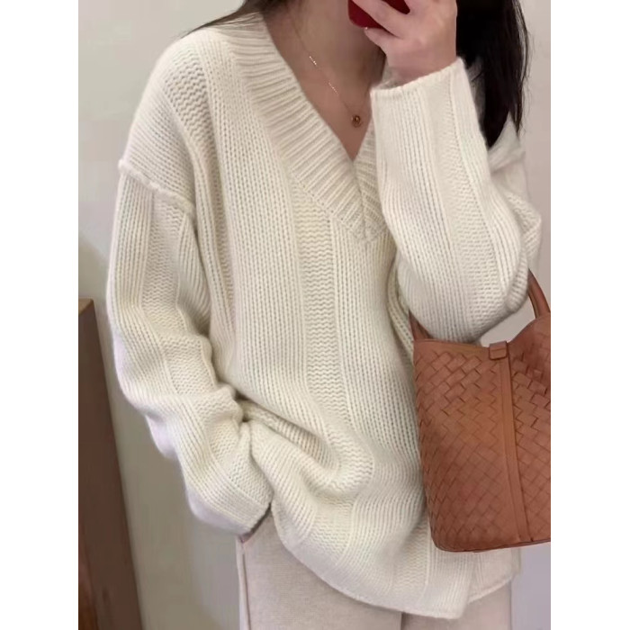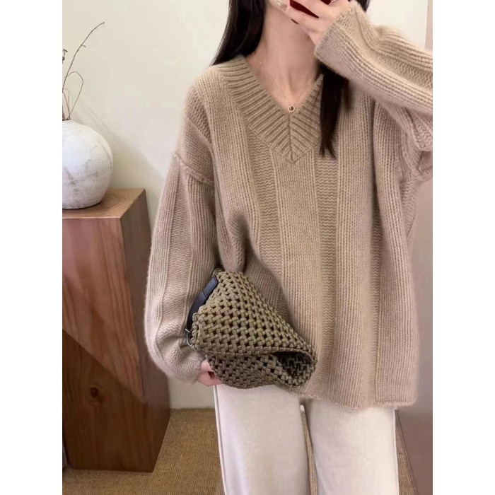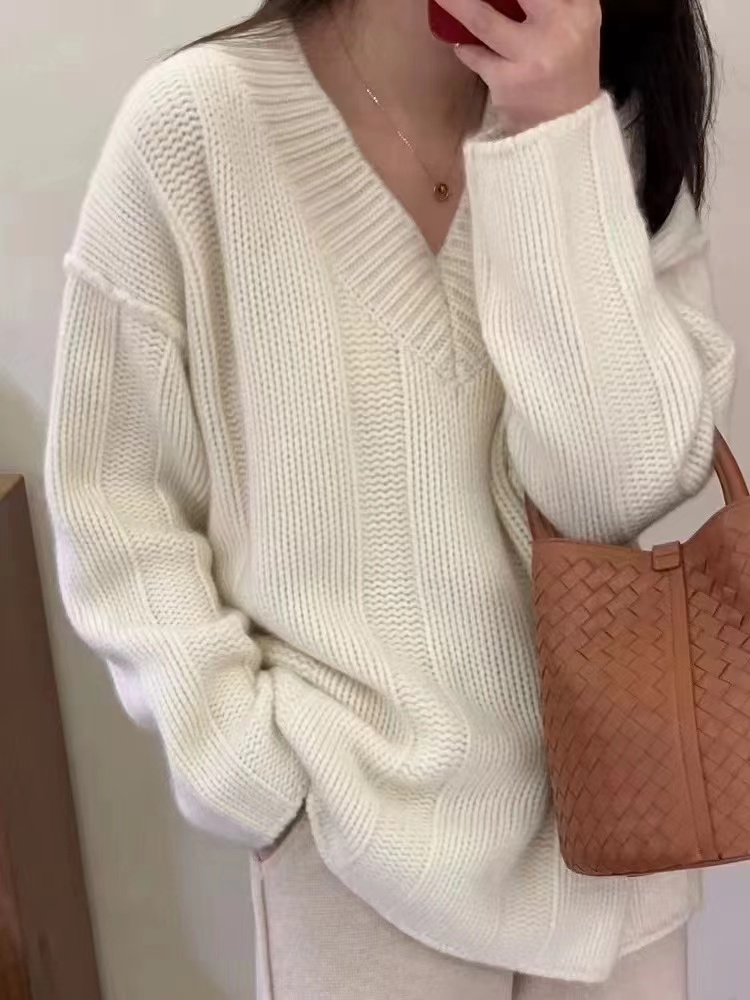 V領套頭慵懶寬松加厚百搭休閒羊毛針織打底衫女秋冬新款羊絨毛衣