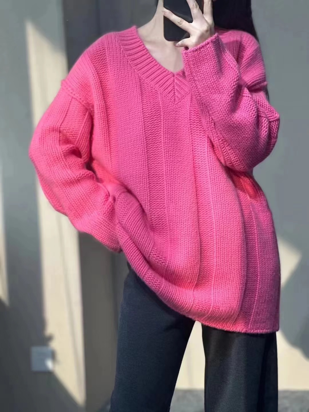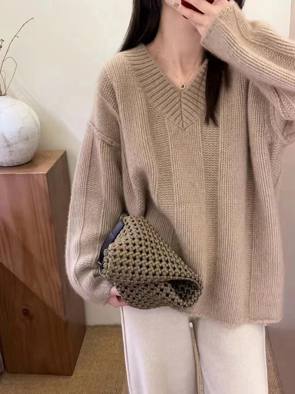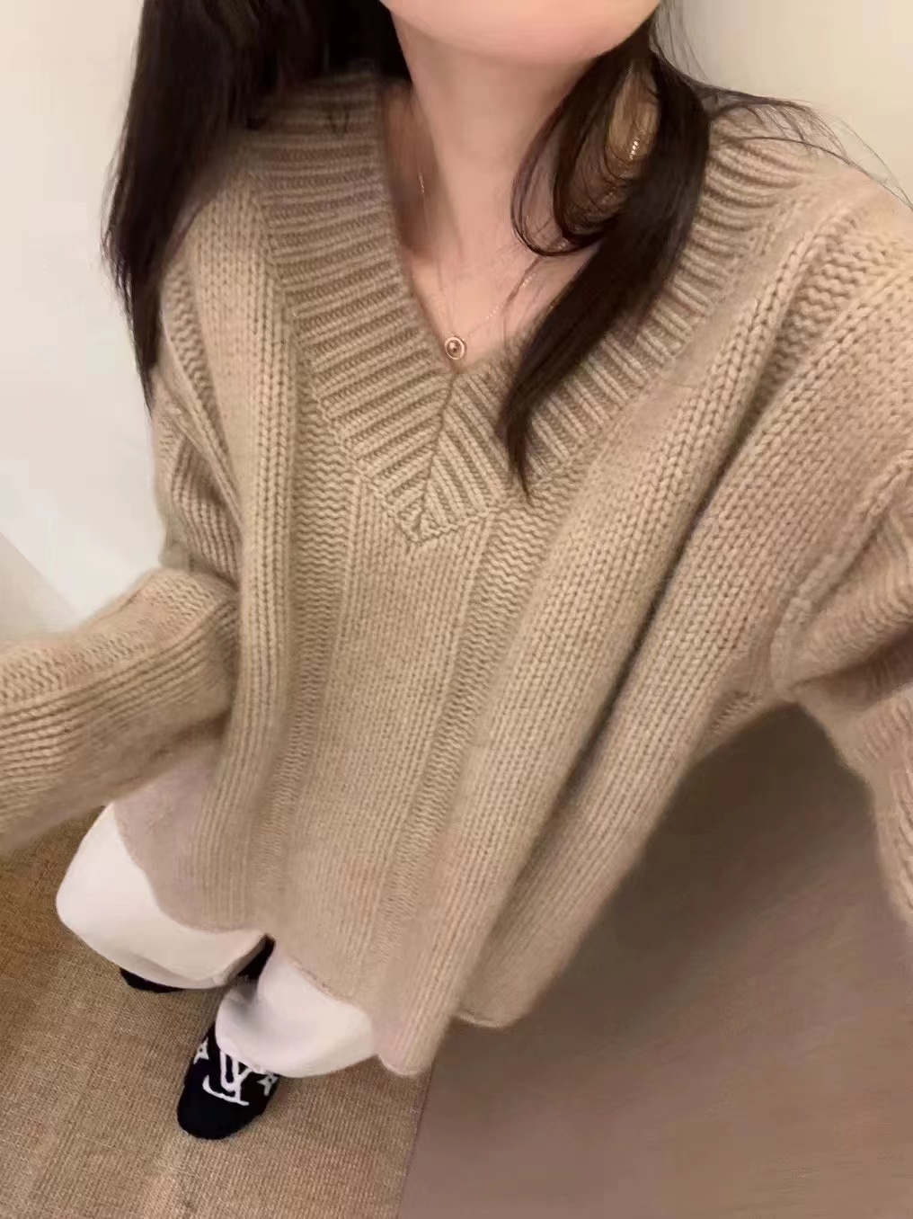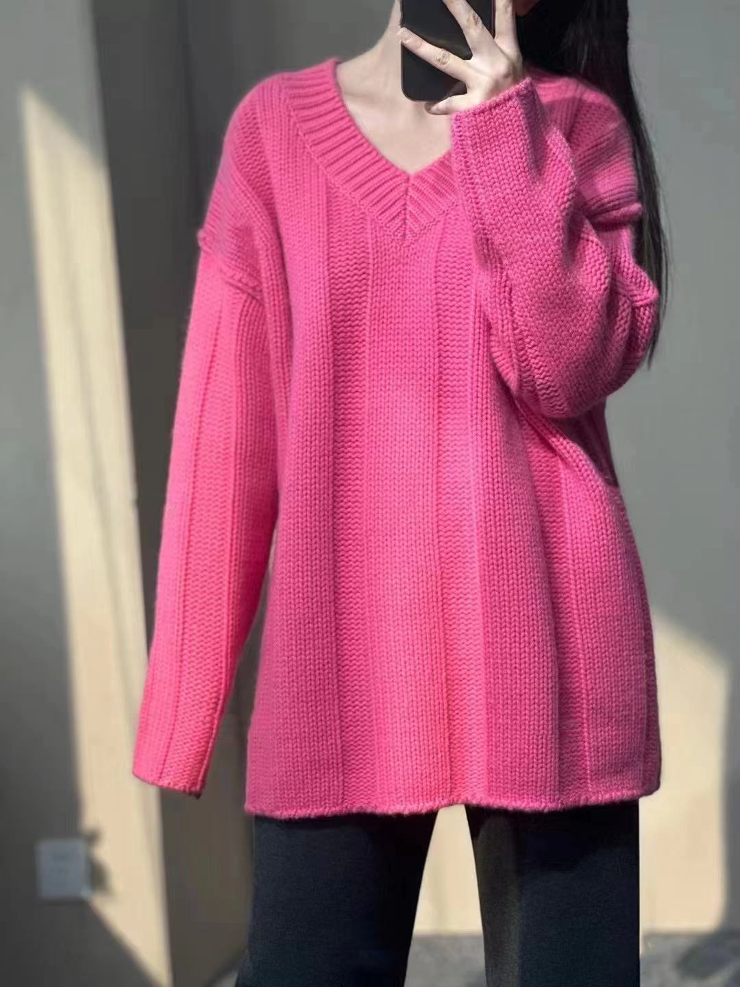 V領套頭慵懶寬松加厚百搭休閒羊毛針織打底衫女秋冬新款羊絨毛衣