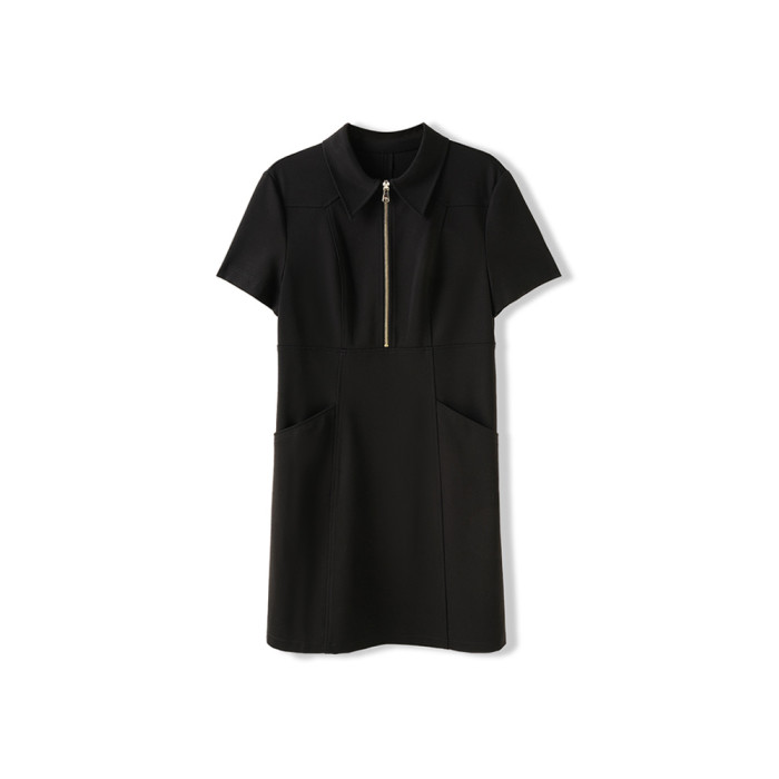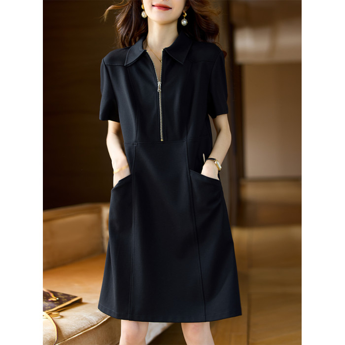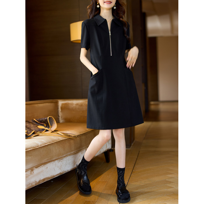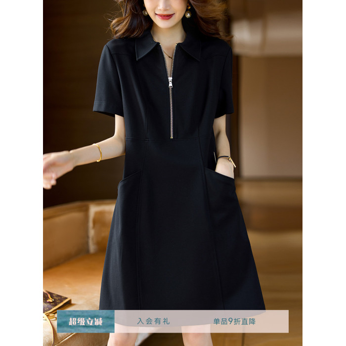 素木休閒翻領黑色連衣裙女夏季2025年新款a字裙歐貨時尚大碼女裝