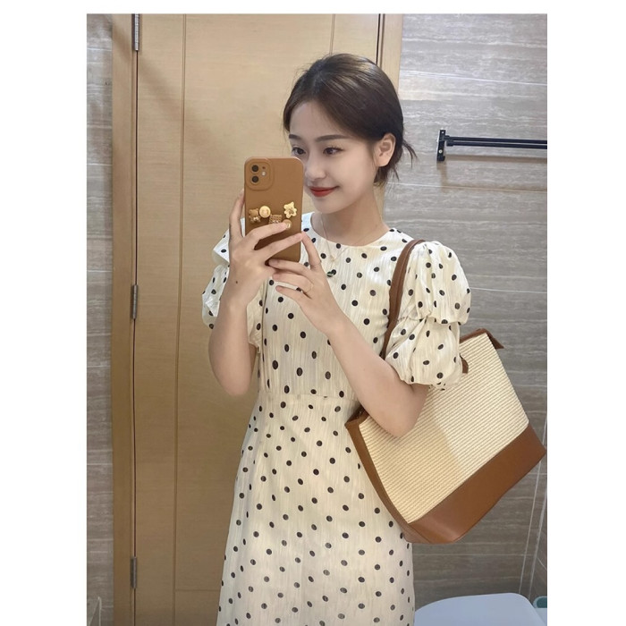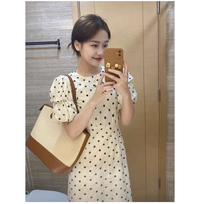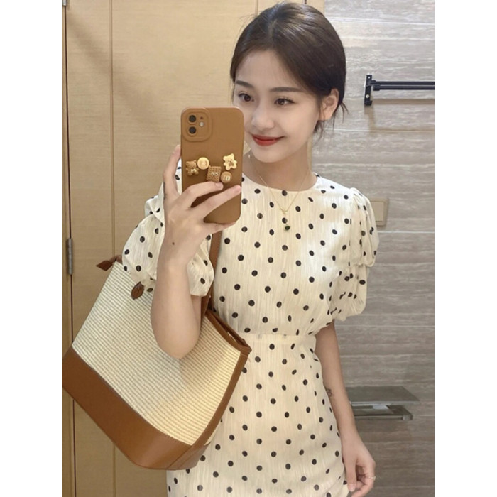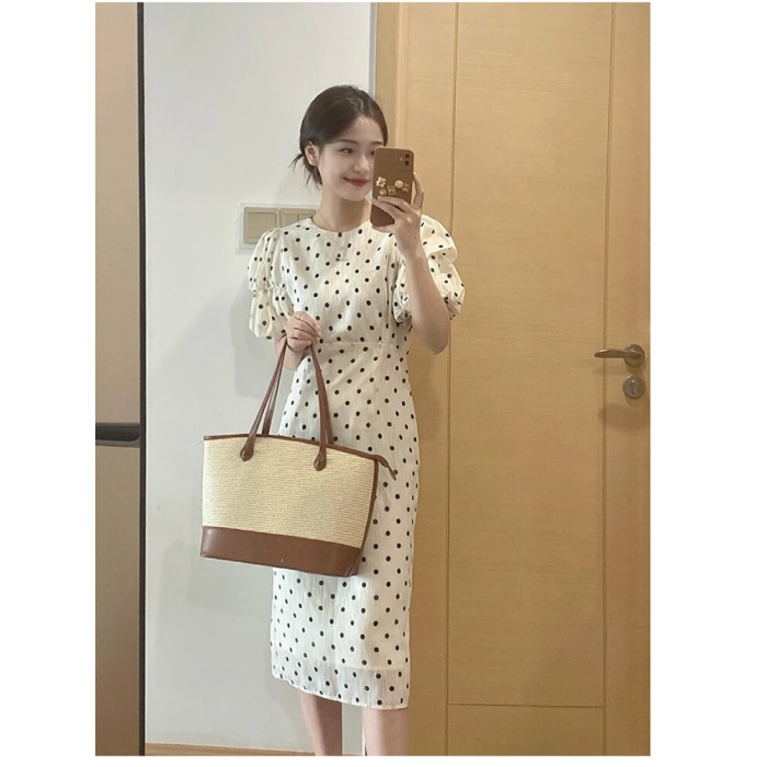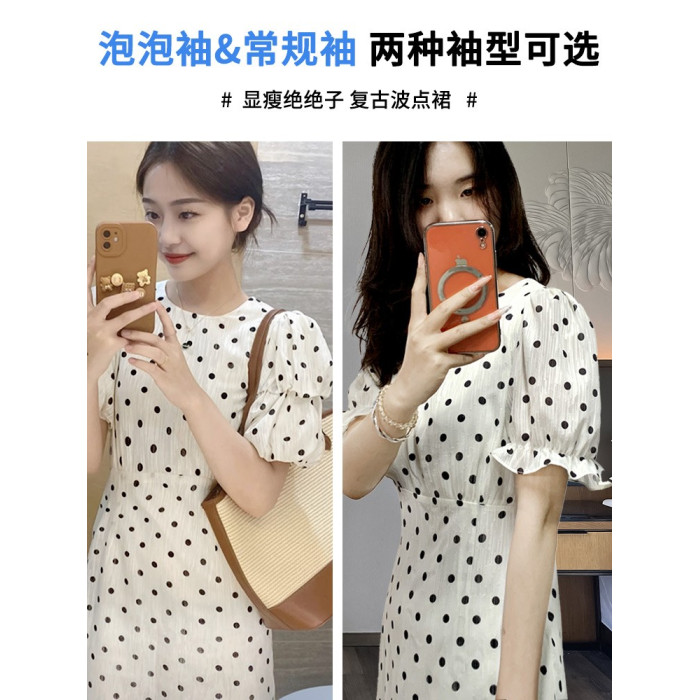 白色波點連衣裙女夏2025新款雪紡法式輕奢高級感黑白圓點斑點裙子