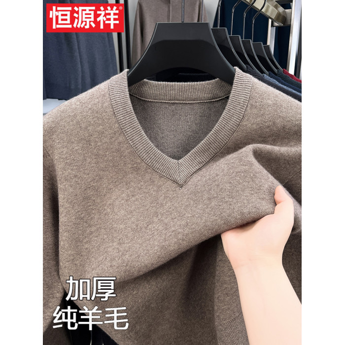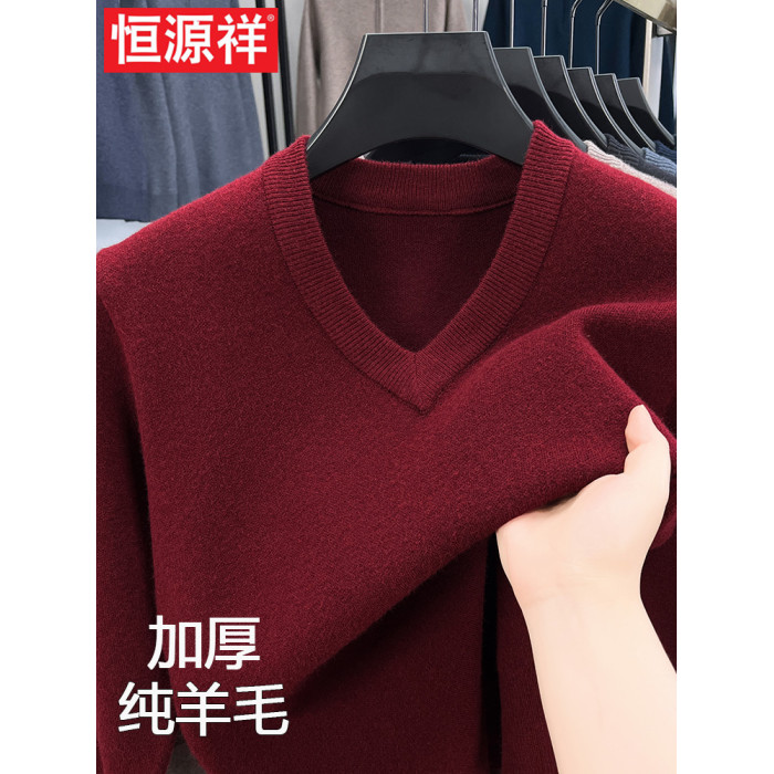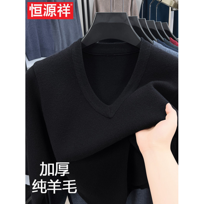 恒源祥冬季V領羊毛衫加厚男士雞心領純色打底衫針織毛衣100純羊毛
