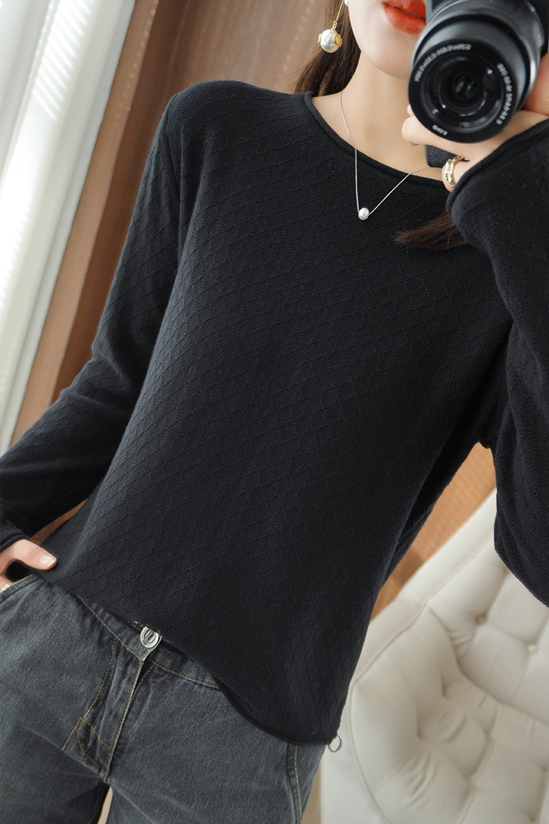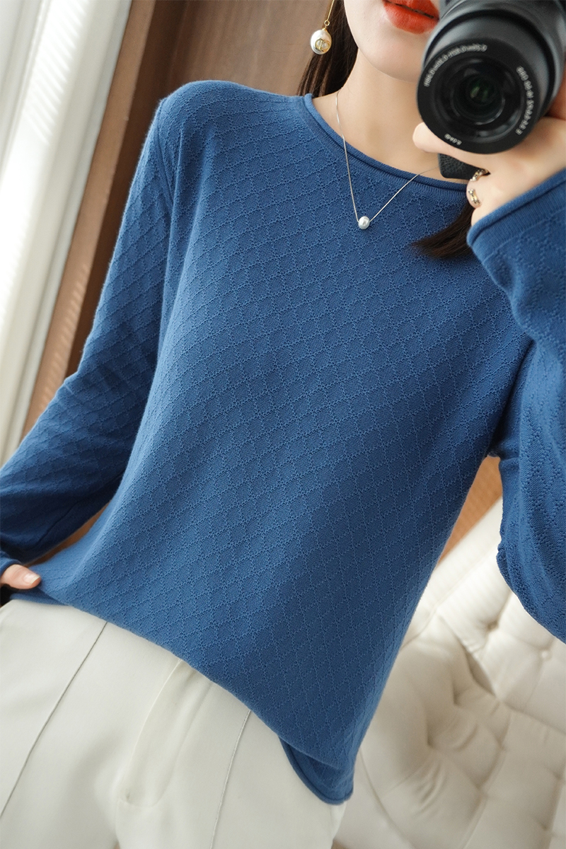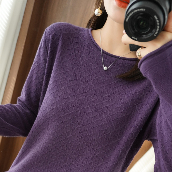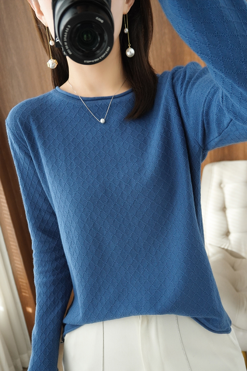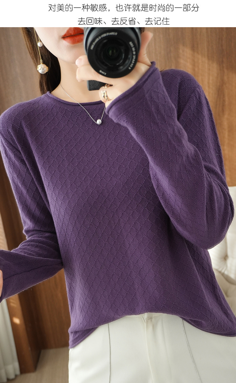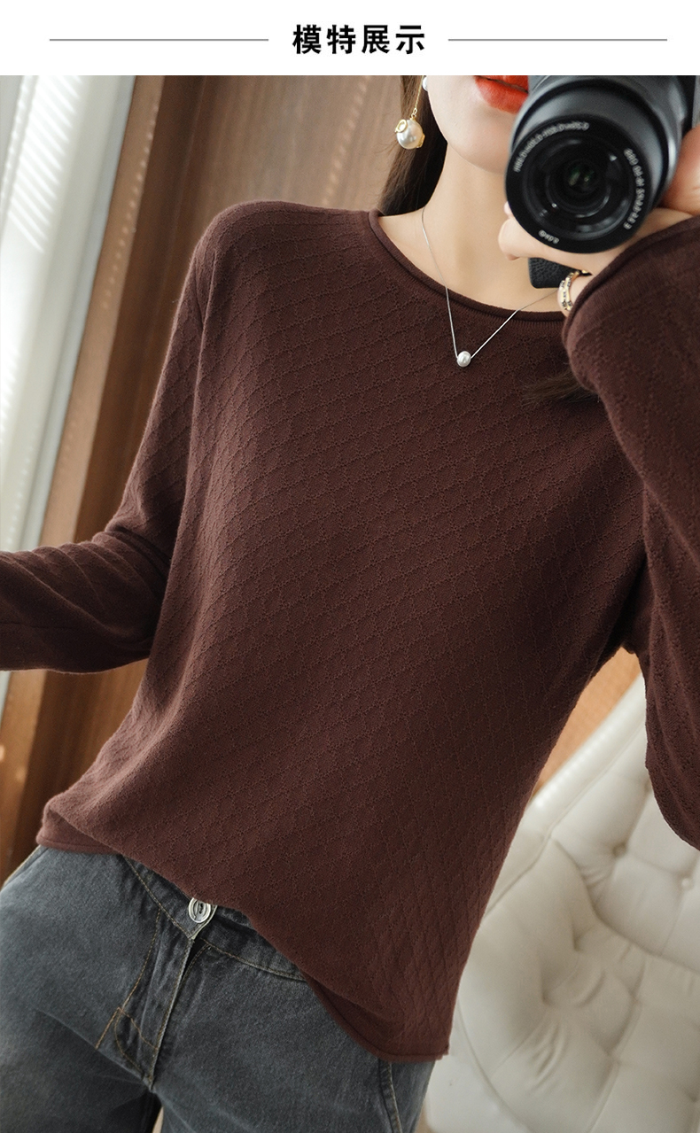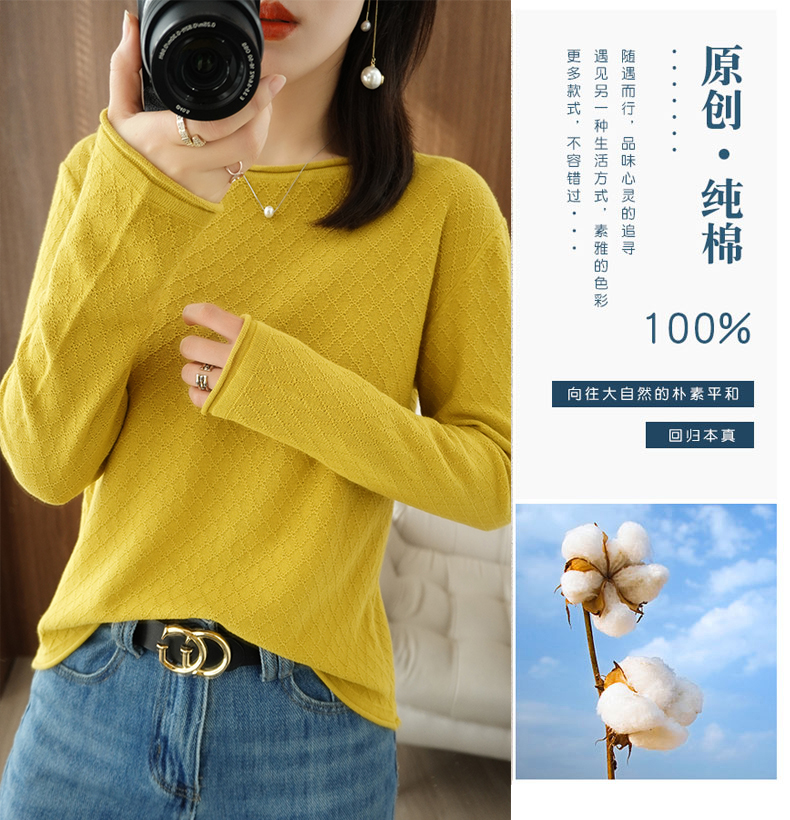 100%純棉線針織衫女薄款毛衣鏤空外穿圓領寬松春季新款百搭打底衫