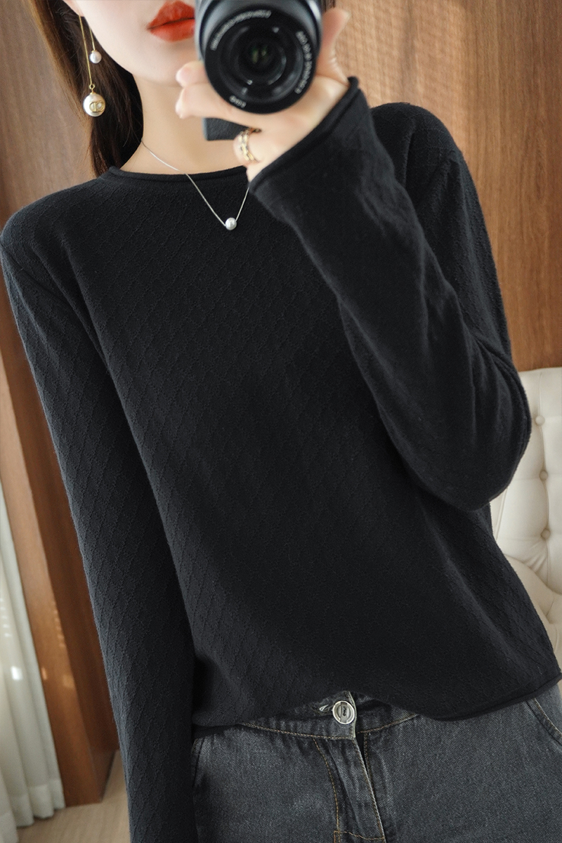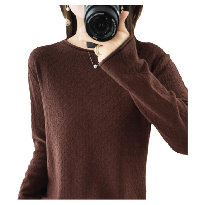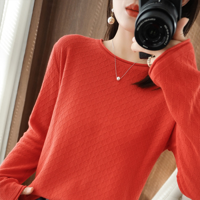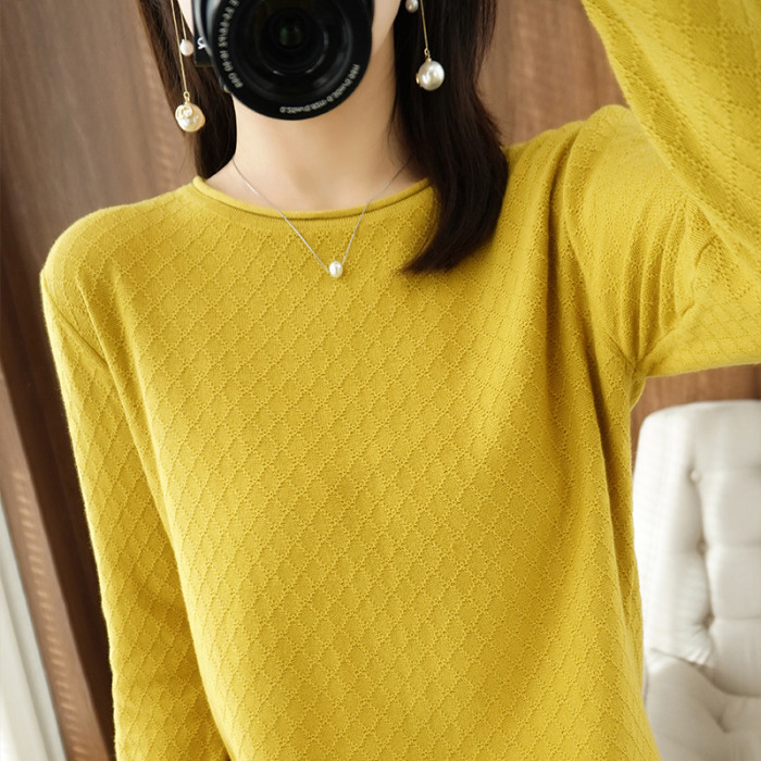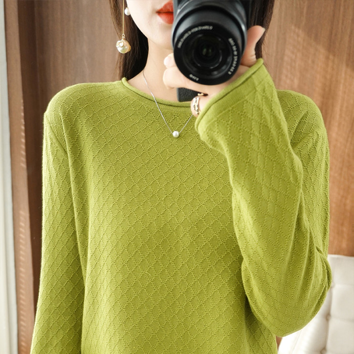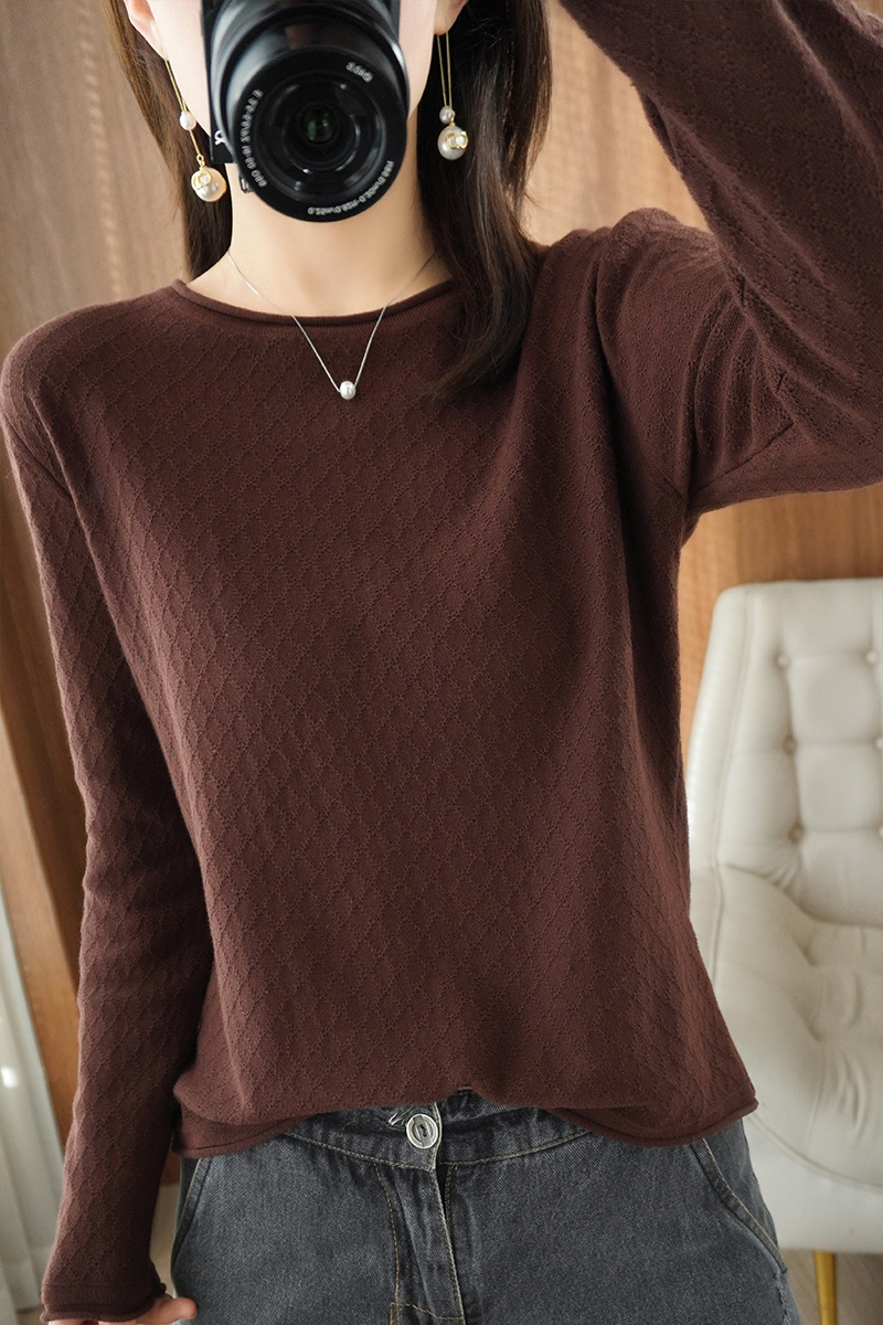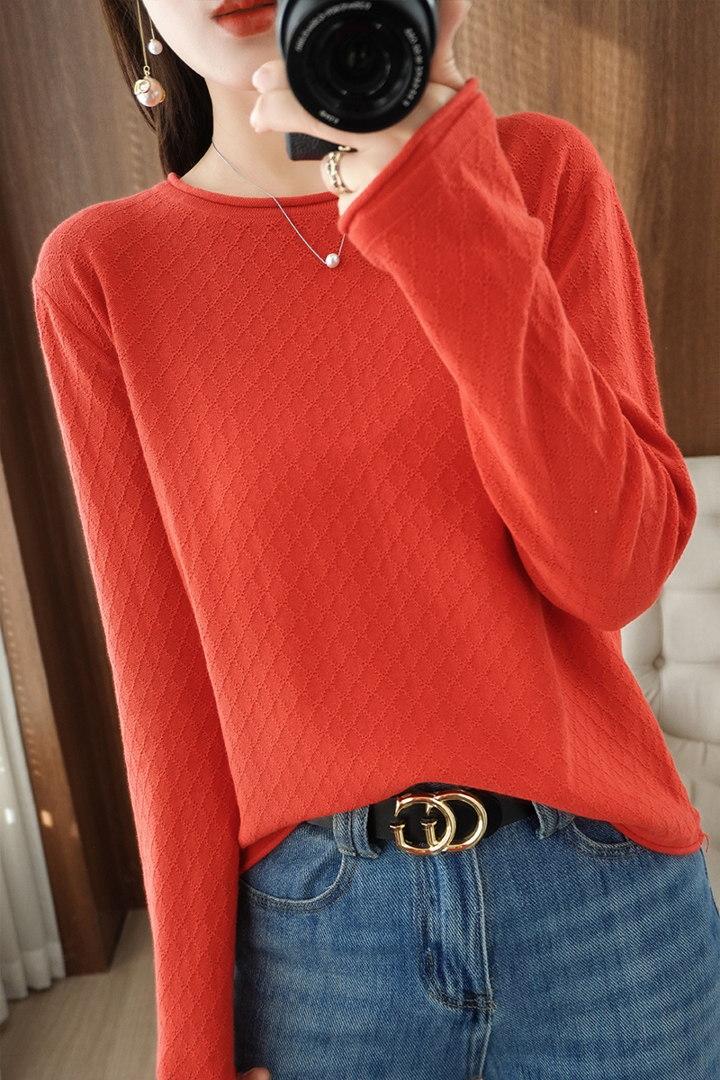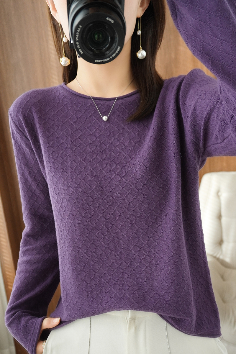 100%純棉線針織衫女薄款毛衣鏤空外穿圓領寬松春季新款百搭打底衫
