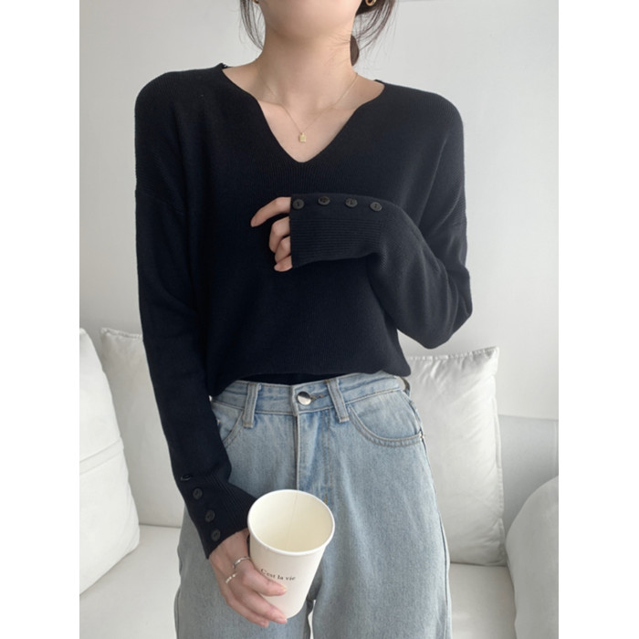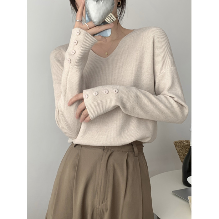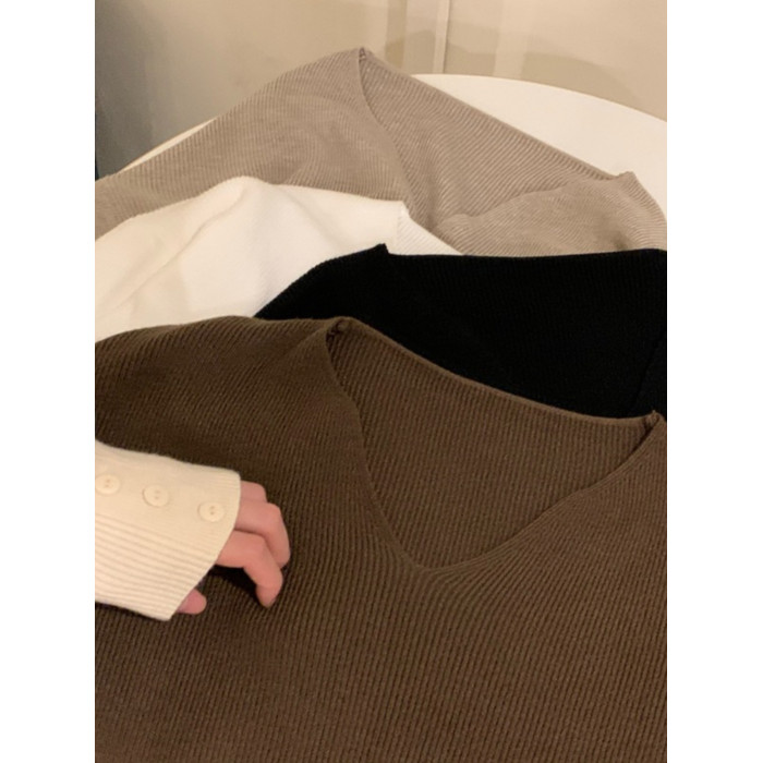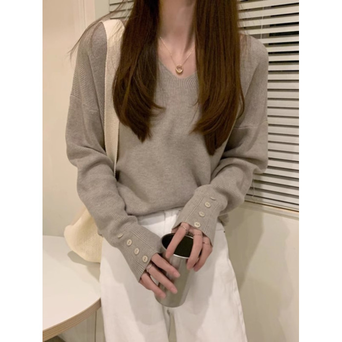 寬松慵懶V領打底衫女秋冬外穿2025新款松弛感胖mm針織毛衣不起球