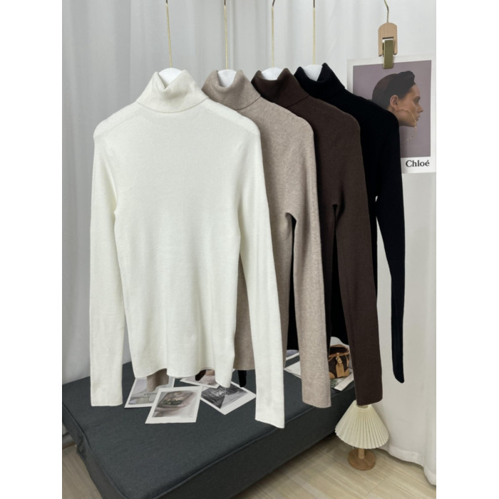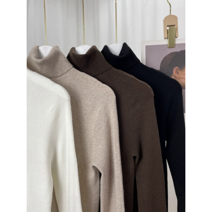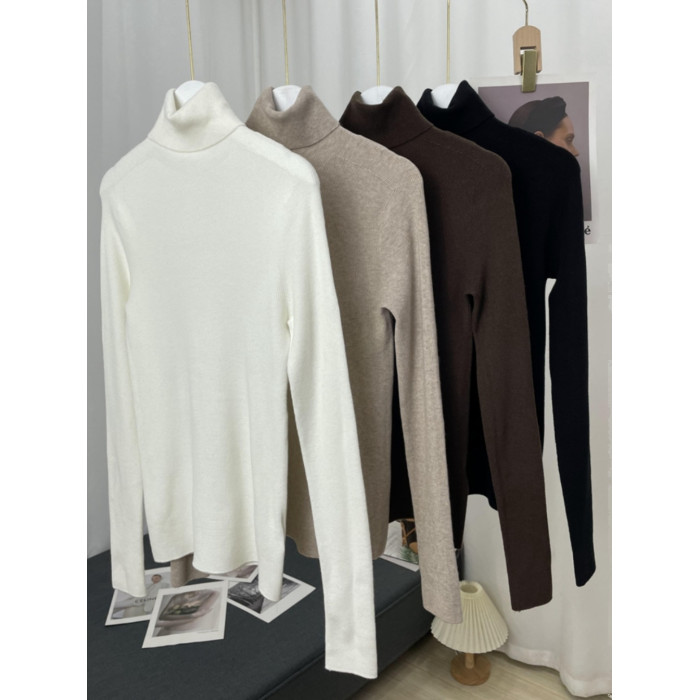 無縫一體柔軟細膩羊毛羊絨高領竪條紋百搭長袖針織打底衫 毛衣女