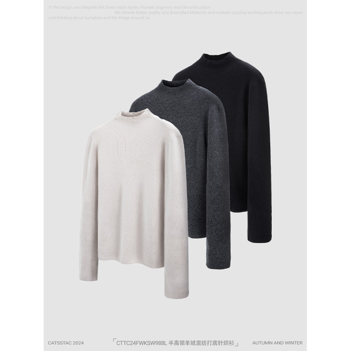CATSSTAC 座山雕伴侶 半高領羊絨混紡針織衫親膚貼身純色打底衫男