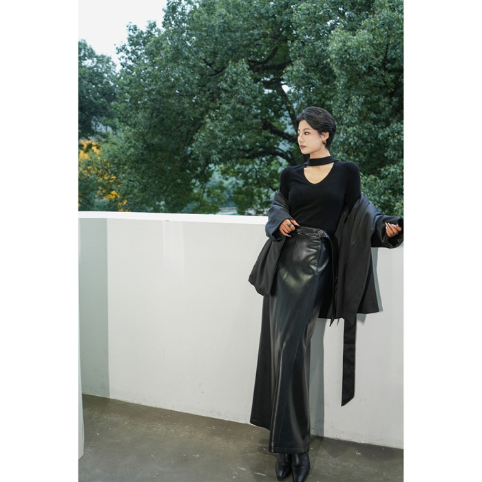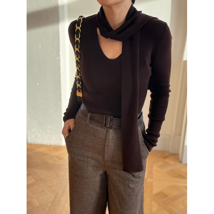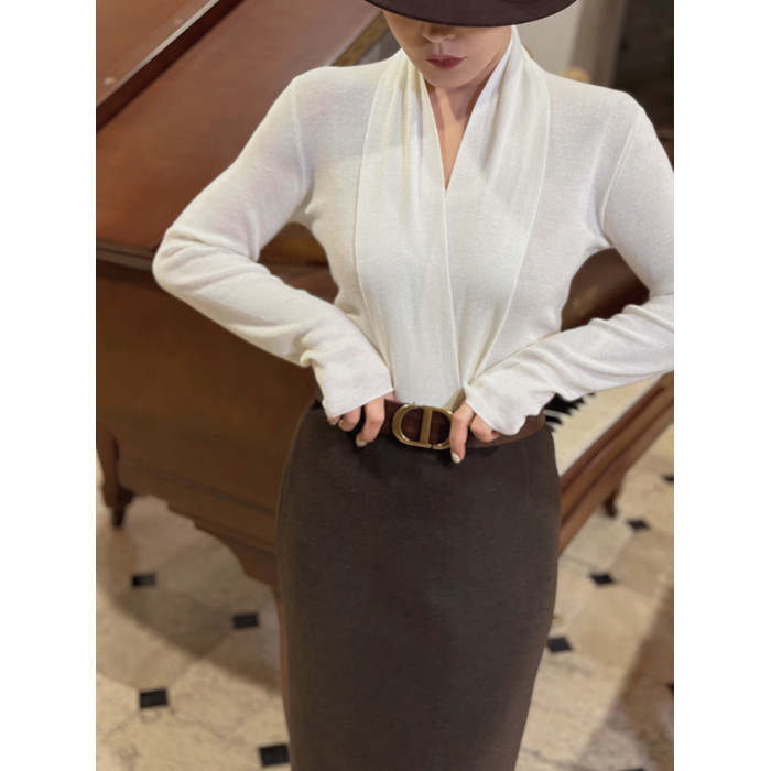【織夢】設計感純色羊毛飄帶長袖針織衫女春季修身顯瘦洋氣打底衫