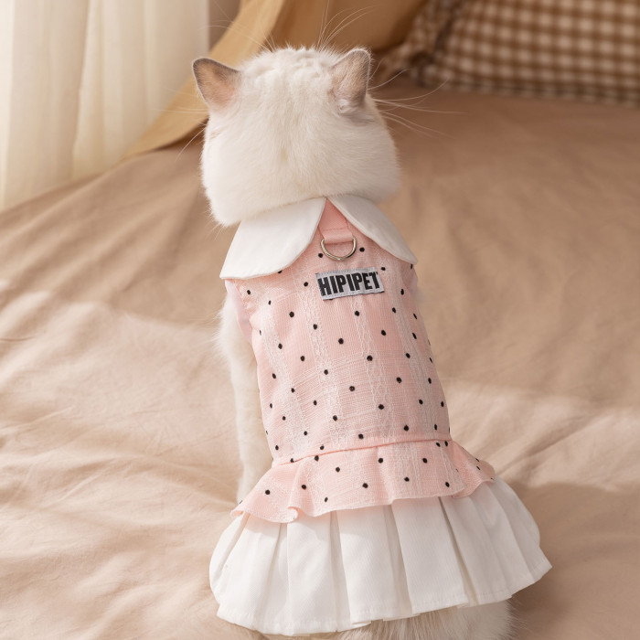 秋季貓咪衣服娃娃領裙子薄款德文貓無毛貓狗狗小型犬公主寵物裙子