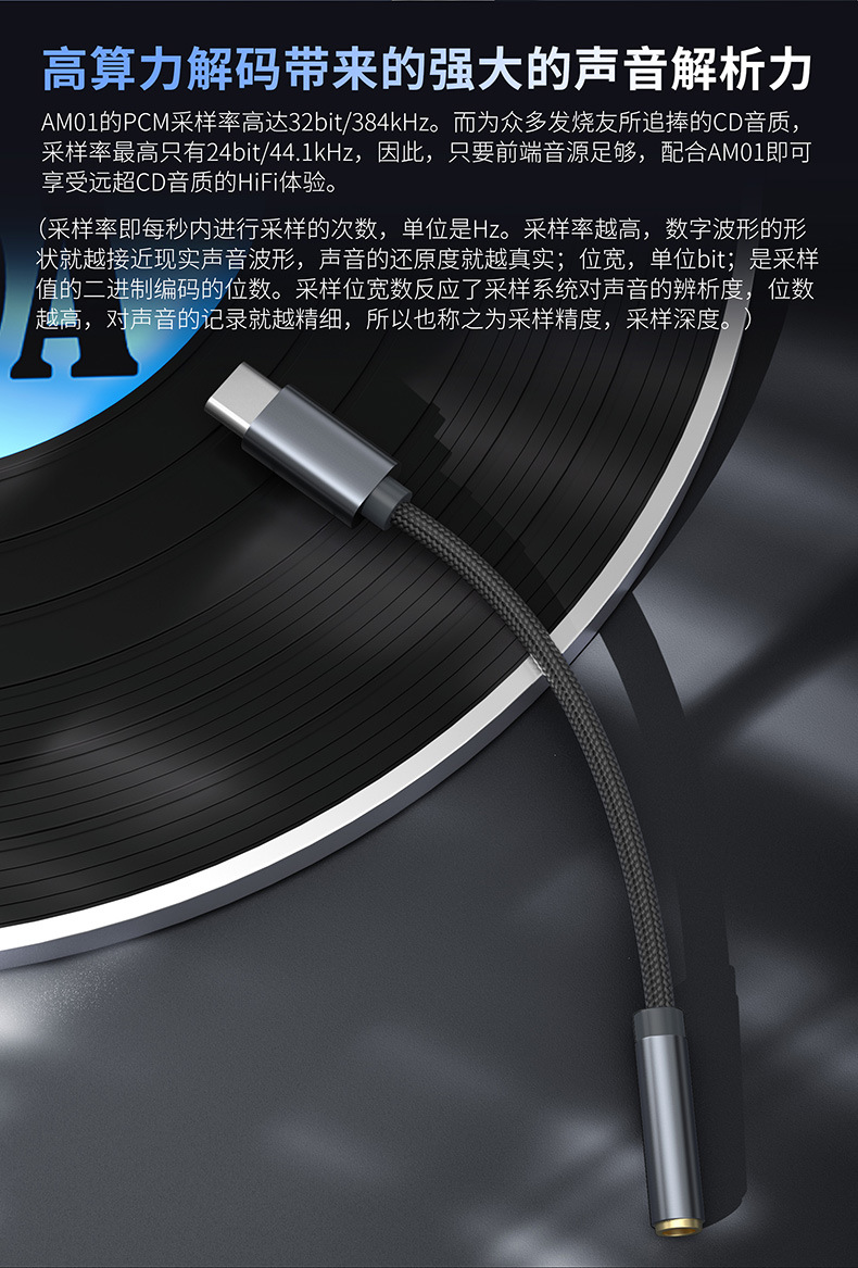 KZ-AM01可攜式解碼耳放雙芯片DAC小尾巴Type-C轉3.5音頻轉接線