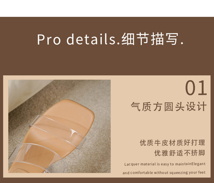 加肥透明方頭水晶高跟鞋2025年夏季新款粗跟外穿低跟後空涼拖鞋女