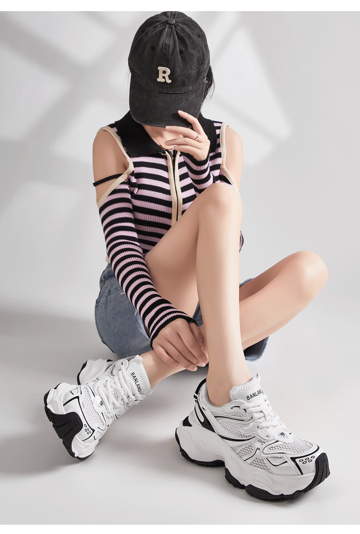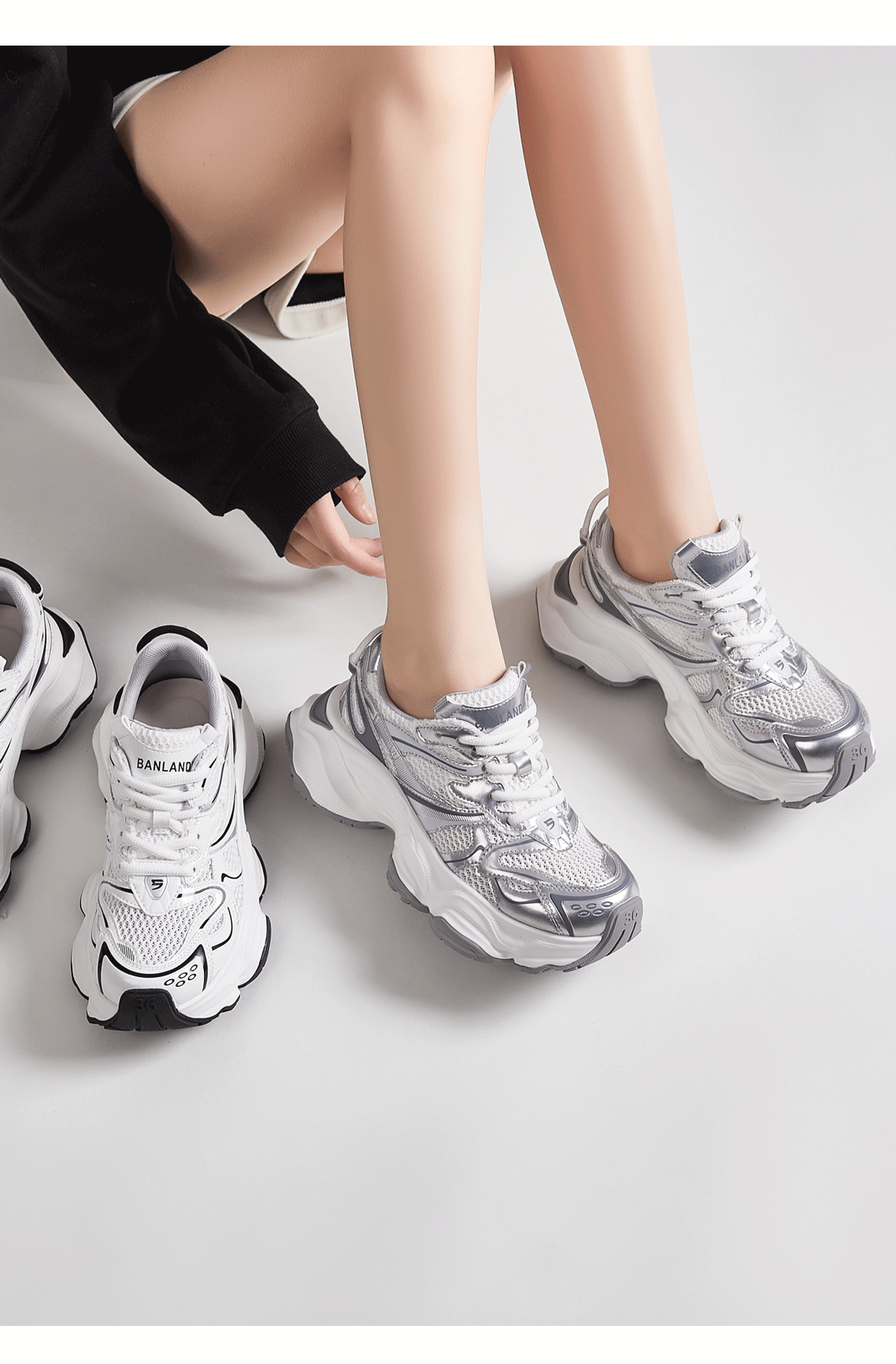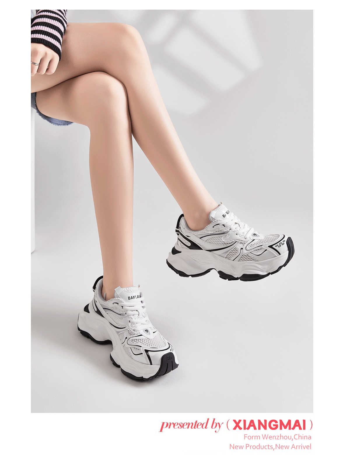 28512-3新款拼接老爹鞋女厚底增高系帶運動休閒鞋2024春秋百搭