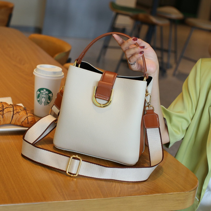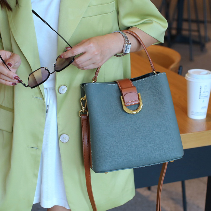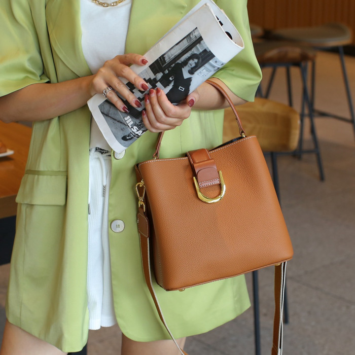 真皮女包新款頭層牛皮手提斜後背包時尚百搭大容量水桶包女8855